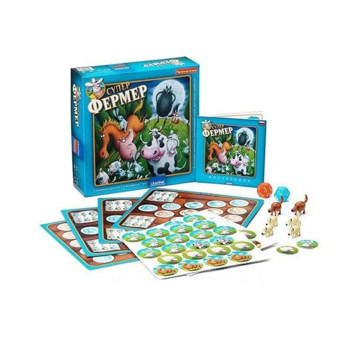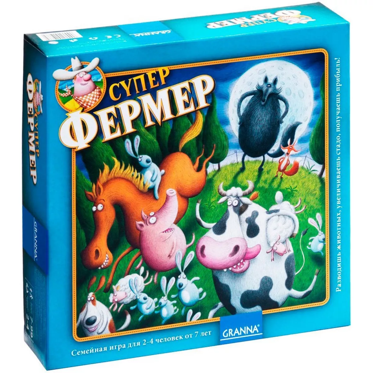 Як приємно буває відпочити на свіжому повітрі у селі! Побавитися із кроликами, корівками, конячками! А може, не просто відпочити, а стати фермером самому? З цим як раз і допоможе барвиста стратегічна гра Суперфермер! Гра підійде для компанії від 2 до 4 гравців, при чому дорослі фермери позмагаються у навичках стратегії та планування, а дітки зможуть не лише закріпити знання про тварин, а головне - розібратися у концепції ризику, вираховувати найвигидніші варіанти обміну та навчитися «не складати усі яйця в один кошик». Про що сама гра? Кожен з фермерів у свій хід кидає два кубики з малюнками тварин. І якщо на кубиках співпали символи, або символ співпав з парою тварин, що вже є у вас в загоні, – ви отримуєте поповнення до стада. Але якщо на кубику випаде лисиця або вовк, то їх до стада забрати не можна (їх навіть у цирк не беруть, де там на ферму!), ще й навпаки, вони можуть вкрасти у вас тварин! Лисиця забере всіх кроликів, а вовк - взагалі всіх тварин, окрім кроликів (занадто маленькі вони для нього) і коня (кінь йому не треба вдома, ми питали). Та вони не страшні, якщо фермер має собаку: маленького боїться лише лиска, а от великого – усі хижаки! Та собаку потрібно виміняти заздалегідь, хоча, можна й ризикнути… Також, на початку свого ходу гравець може поміняти своїх тварин із тваринами інших гравців по актуальному банківському курсу. Звісно ж, якщо ніхто не проти. То як перемагати? Суперфермером стане той гравець, хто зможе відбитися від усіх диких звірів та першим зібрати в своєму загоні кролика, вівцю, свиню, корову та коня. Звучить все просто, але чи впораєтесь ви із керуванням таким стадом, якщо ще й кубики кожного разу так і хочуть випасти зовсім не тим боком, що потрібен! Якщо ж відповідь «Так!», мерщій купуйте коробочку з грою Суперфермер та кличте друзів і сім’ю збирати власну веселу ферму! Хм, ви готові кардинально збільшити розмах планів по розведенню усього живого? Тоді завітайте до справжнього парку диких тварин з грою Парк Менеджер.