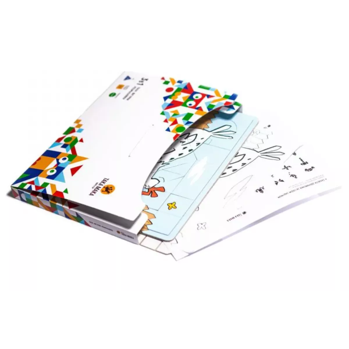 • Папка – Ігрове Поле та Сховище: Міцна папка служить не тільки для зручного зберігання всіх компонентів гри, але й може виступати як основа для ігрового процесу. Це додає практичності та допомагає підтримувати порядок, що важливо для маленьких гравців.