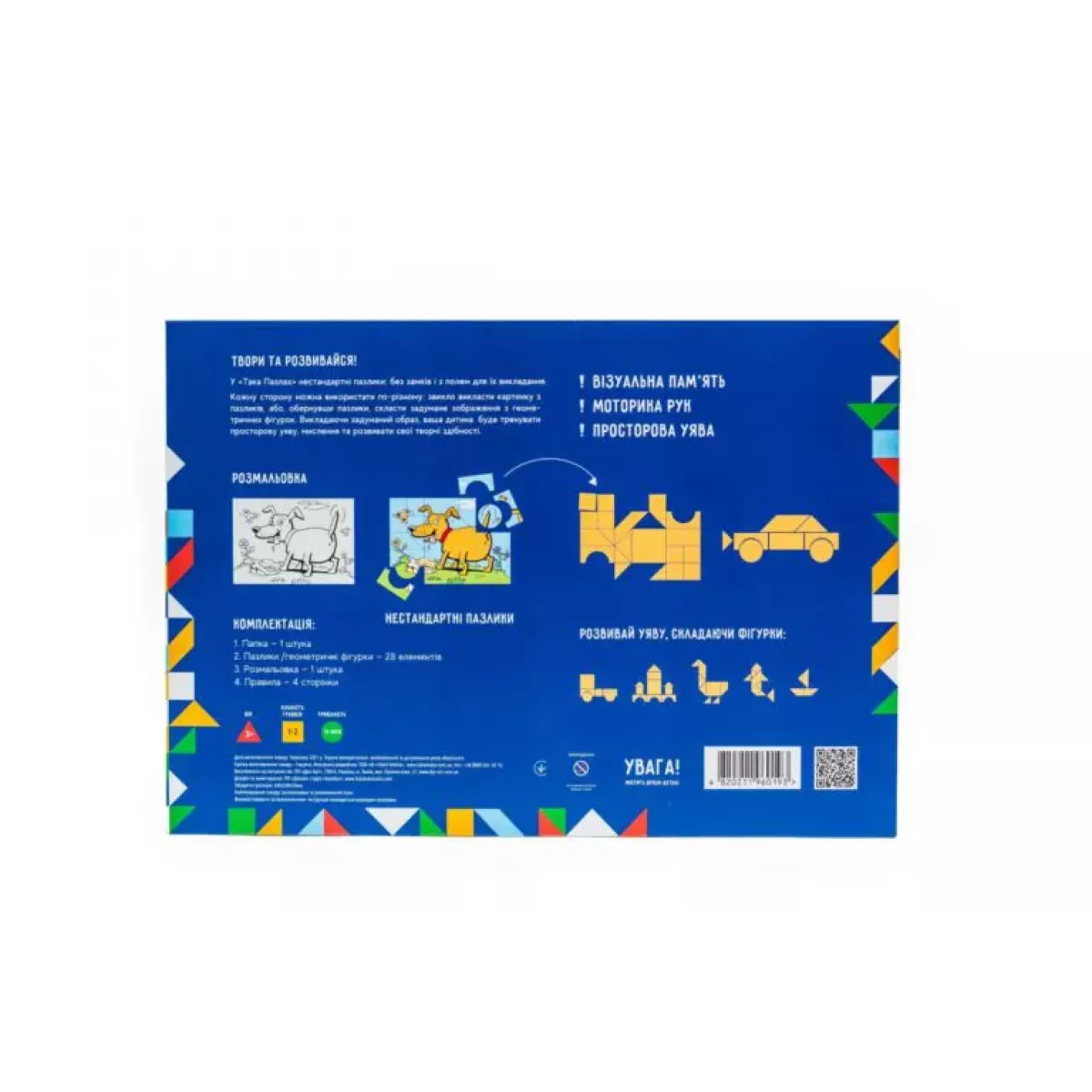Зануртесь у світ веселощів та розвитку разом із настільною грою "Така Пазл 3 в 1 - Песик"! Ця чудова українська розробка створена спеціально для наймолодших дослідників віком від 3 років, пропонуючи не лише цікаве дозвілля, а й комплексний розвиток важливих навичок. Якщо ви шукаєте ідеальну дитячу гру, яка поєднує в собі розвагу та навчання, "Така Пазл 3 в 1 - Песик" стане чудовим вибором для вашого малюка. Ця настільна гра-головоломка, розроблена в Україні, є не просто звичайною іграшкою, а справжнім інструментом для всебічного розвитку дошкільнят та малюків, починаючи з трьох років. Вона ідеально підходить для тих, хто прагне купити розвиваючі ігри для дітей, що сприяють формуванню критично важливих здібностей у ранньому віці.