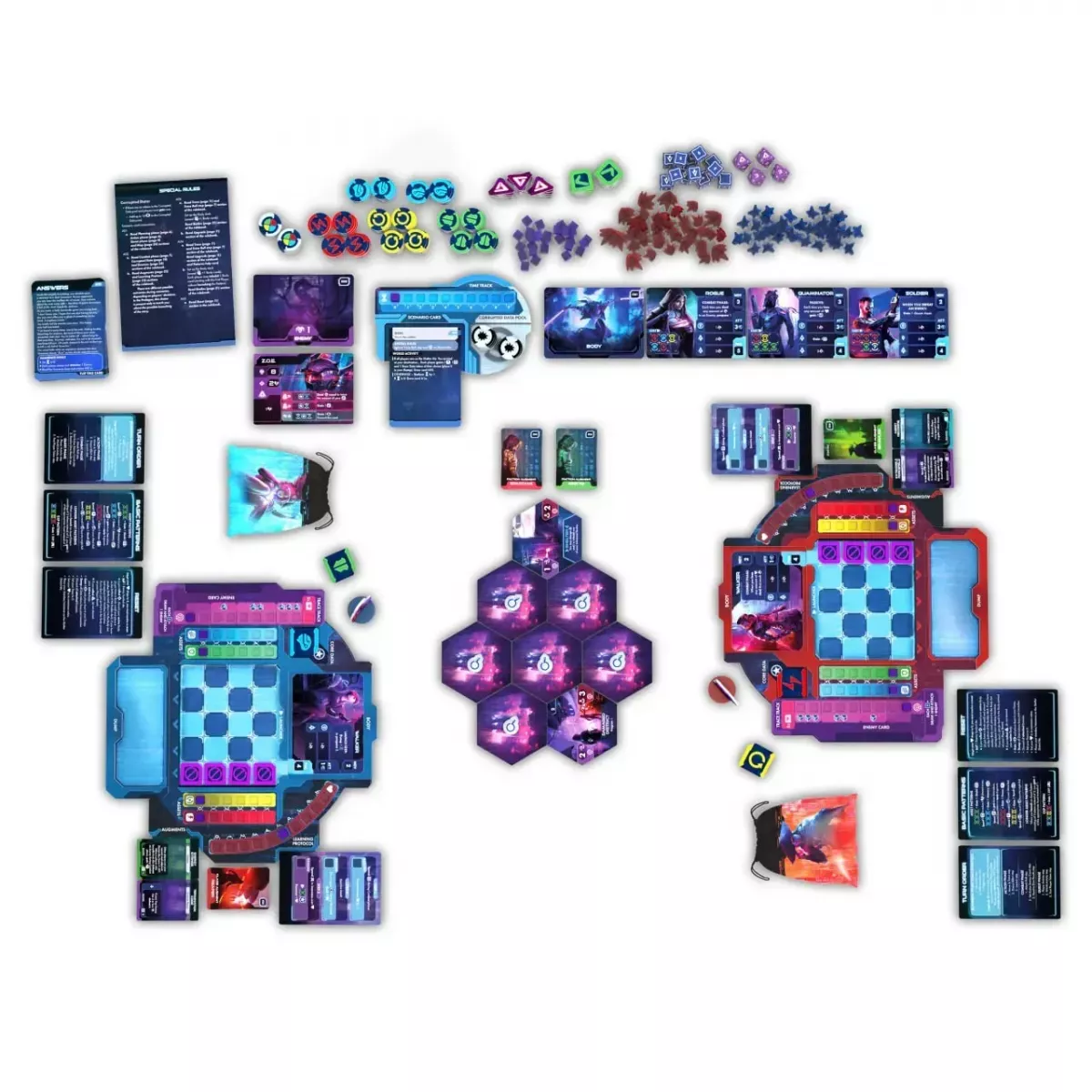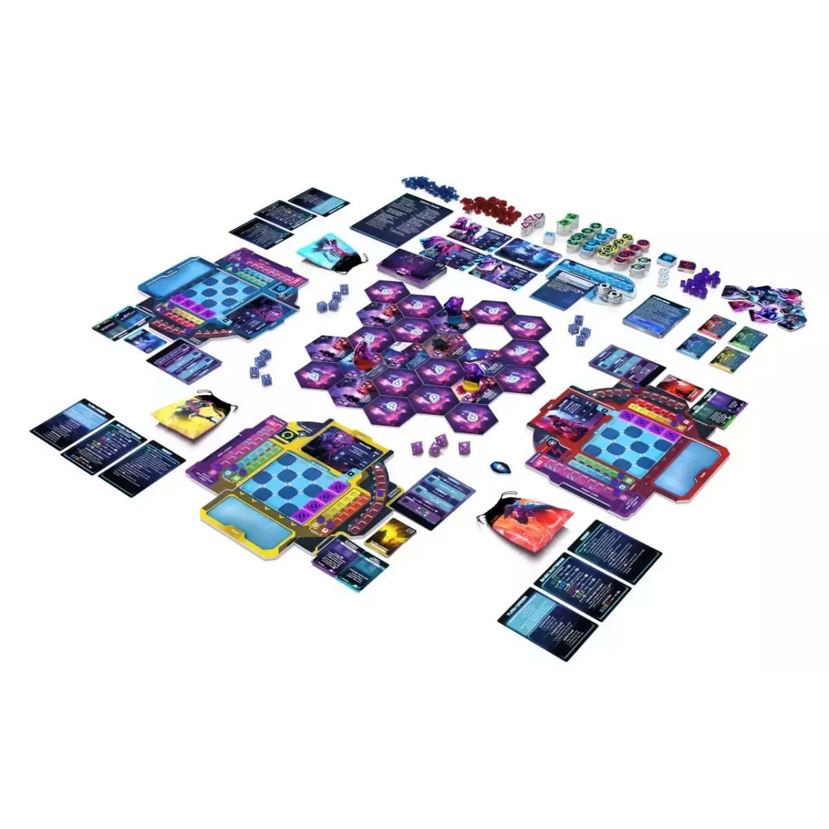 У коробці 70 карт ворогів, 139 карт сценаріїв, 1 карта соло-режиму (бот JORDAN), 13 карт тилу, 12 карток-пам'яток, 13 карт навчальних протоколів, 62 карти для генератора сценаріїв, 52 карти підсилення класів, 48 карт підсилення фракцій, 2 аркуші босів, 16 жетонів, 2 жетони Босіва, 11 пластикових підставок (8 у кольорах гравців та 3 чорних), 24 плитки Районів, 23 жетони Сходження, 20 жетонiв Дослiдження, 16 жетонів у Блоку, 8 жетонів Успіху, 1 жетон Першого Гравця, 128 жетонів Базових Даних (4 типи), 16 жетонiв Вiдкритих Даних, 16 жетонів Пошкоджених Даних, 8 жетонів Основних Даних, 6 жетонів кубів Гравця (2 комплекти), 4 плитки Знижка, 1 планшет вiдлiку Часу, 4 планшети Гравців, 11 аркушв Сценаріїв, 1 аркуш Прогресу, 7 роздільників для стандартних карт, 3 роздувачі для малих карт, 4 мішечки Пакет Даних, 40 універсальних маркерів, 40 маркерiв очок Досвiду, 40 маркерів очок Пошкоджених, 4 обмежувачі ЦЛН, 4 куби Ворога , 12 кубів Гравця