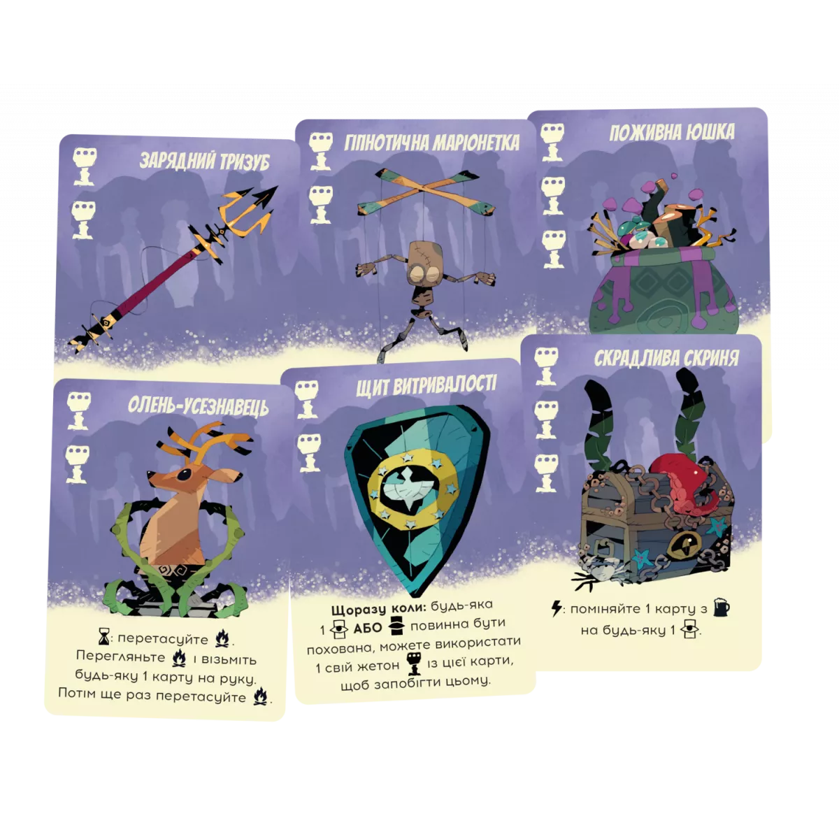 На початку гри із цим модулем кожен учасник отримає одну випадкову карту артефакту, властивості якої зможе використати декілька разів протягом гри.