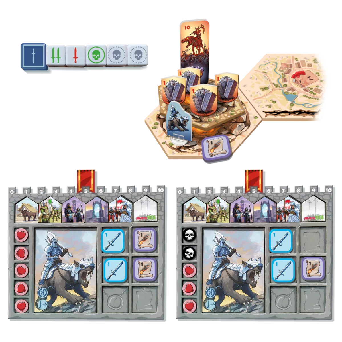 Наймання загонів – отримайте нові кубики лицарів, лучників або магів, сплативши їх вартість. Для цього потрібно перебувати у своєму місті і мати відповідну будівлю.