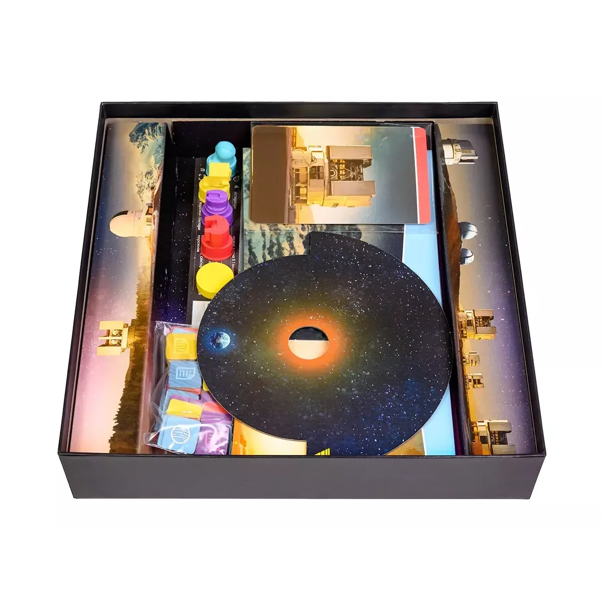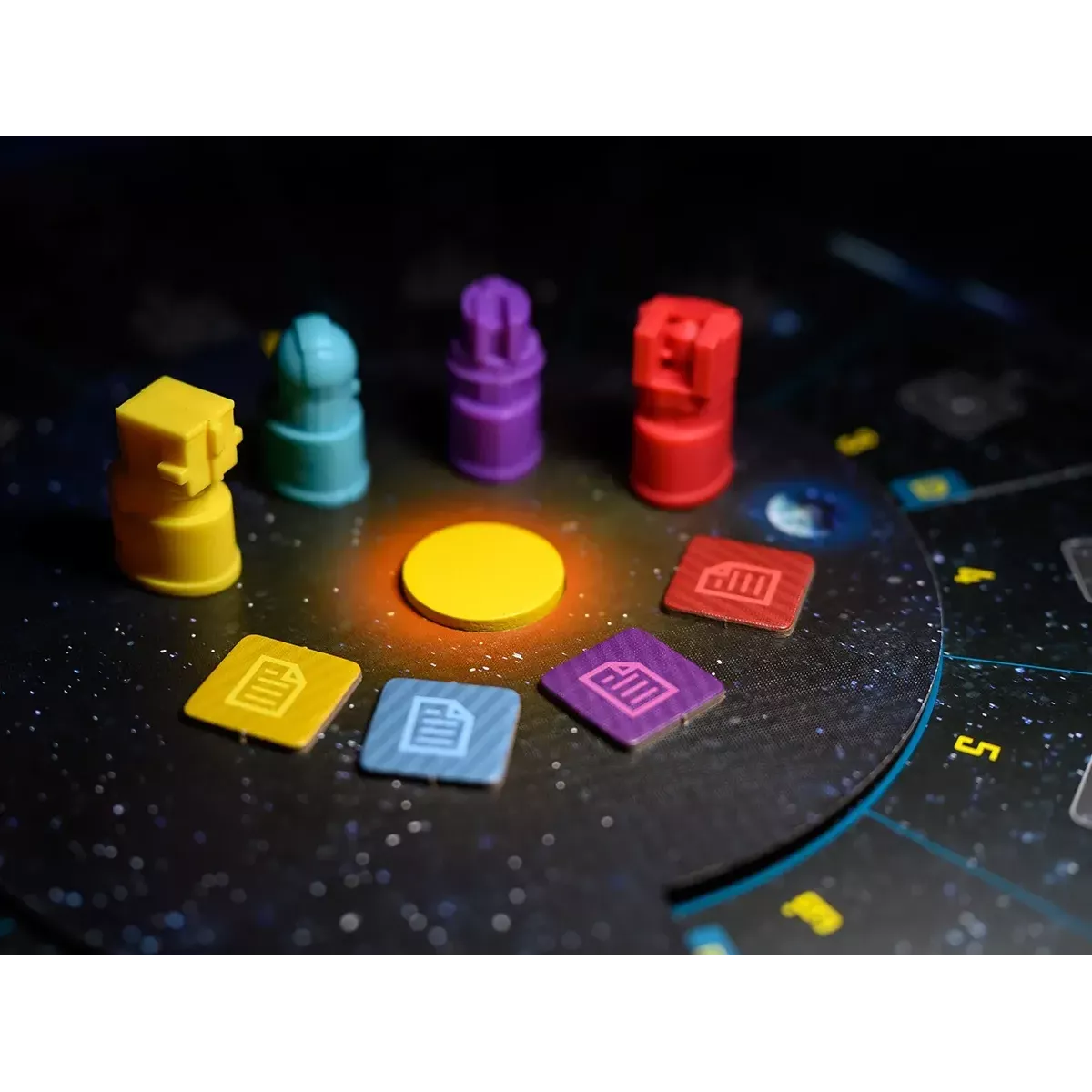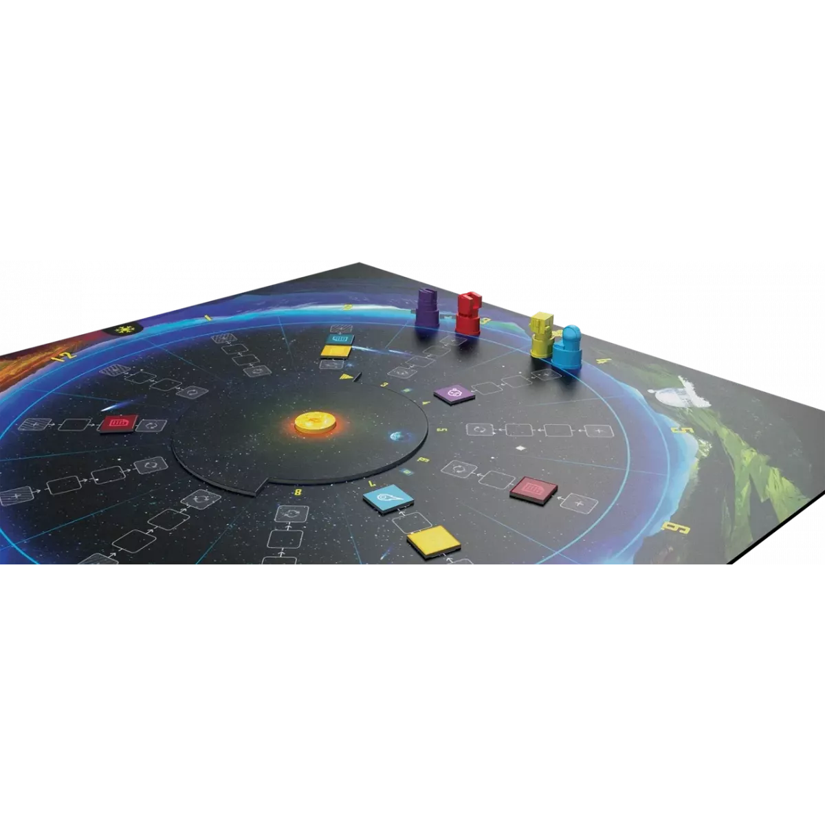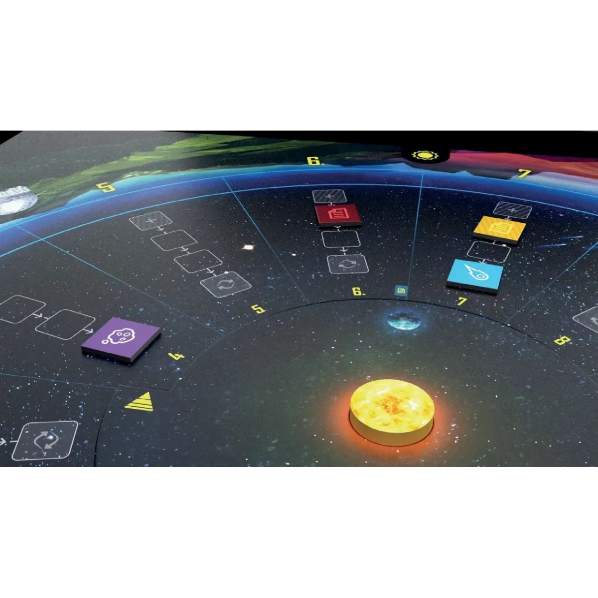 Ігрове поле поділене на сектори, що представляють Сонячну систему та Землю. У будь-який момент гри гравці можуть досліджувати лише одну половину карти, визначену центральним циферблатом.