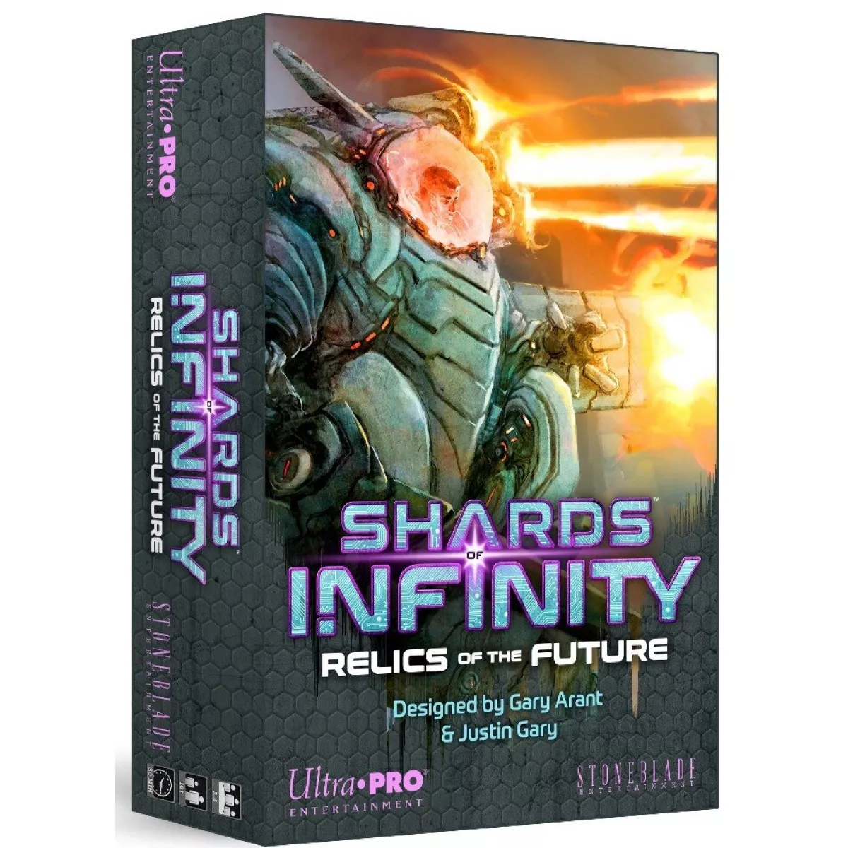 Увага! Це доповнення. Для гри вам потрібна базова версія Уламки нескінченності.   Коли Infinity Engine було знищено, осколки, що викривляють реальність, посипалися з неба, знищивши цивілізацію та назавжди змінивши світ. З попелу повстали нащадки людства. Ти лідер серед цих народів, могутній воїн, назавжди прив’язаний до могутнього осколка. Настав час зробити вибір: ваша доля вести свій народ до перемоги чи ви станете реліквією якогось забутого майбутнього? Вибирайте з розумом. Shards of Infinity: Relics of the Future — це перше доповнення до популярної гри зі створення колод Shards of Infinity. Це розширення включає потужні карти, відомі як реліквії, які можуть бути використані кожним із лідерів чотирьох фракцій лише тоді, коли гравець досягне 10 балів майстерності.; коли це відбувається, гравець отримує одну з двох своїх реліквій, а іншу з часом забуває. У набір також входять карти, які можуть використовуватися будь-яким гравцем, але при збігу з призначеним гравцем лідером фракції карта отримує додатковий ефект! Крім того, цей набір містить три нових способи гри. Режим для трьох гравців, відомий як «Кривава баня»: будь-яка завдана шкода приноситься обом супротивникам, а не одному. У режимі Team Attack 2v2 гравці об’єднуються в пари, щоб протистояти команді суперника. Повноцінний режим пасьянсу, відомий як «Немезида», протиставляє гравців-одинаків.