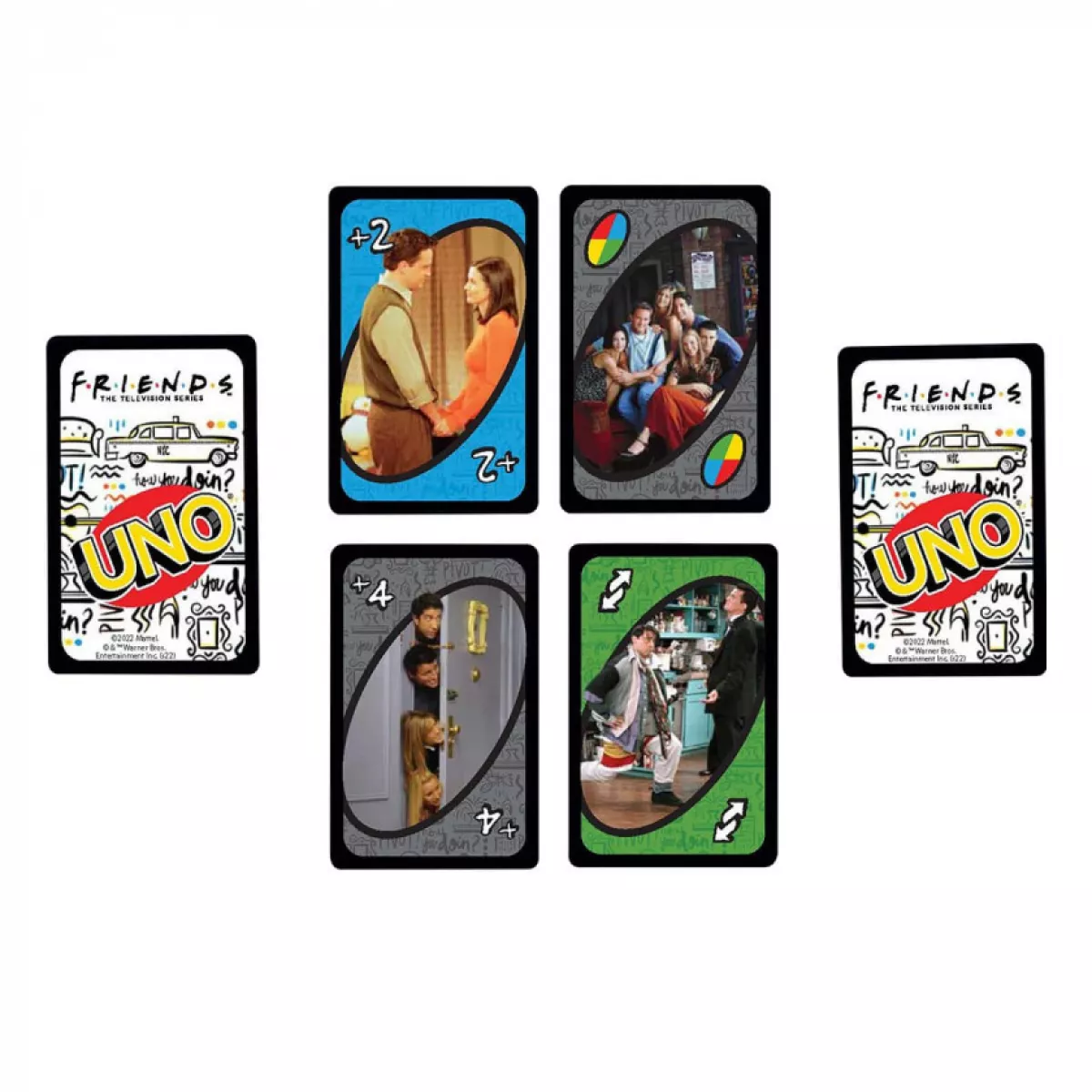 Карткова гра UNO Friends присвячена популярному серіалу «Друзі» і дозволяє гравцям змагатися, намагаючись позбутися всіх своїх карт. Гравці взаємодіють із персонажами, такими як Рейчел, Росс, Моніка, Чендлер, Фібі та Джої, щоб швидше позбутися карт.