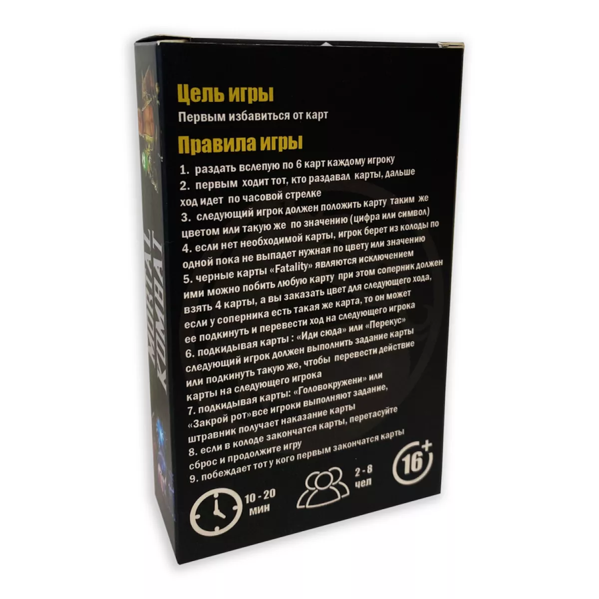 Чорна карта «Fatality» - наступний гравець бере 4 карти, а ви замовляєте колір наступної карти.