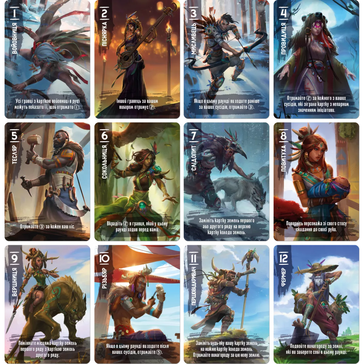…І коли племена ступили на нові землі незвіданого світу Ваальбара, усім стало зрозуміло, що життя тепер кардинально зміниться! Скільки попереду відкриттів, викликів, та, скоріш за все, суперечок з сусідами, адже ніхто не захоче ділитися новим домом. І наше плем’я не виключення. Ваальбара (Vaalbara) це, на перший погляд, дуже просте та швидке карткове протистояння для 2-5 кланів, які змагаються за нові відкриті землі, але велику роль у партіях відіграватиме саме персонаж, який стоїть на чолі експедиції. Всі хочуть відправитися у похід, та чи буде це корисно для племені? Кожен з гравців отримує власну колоду карт племені, яка складається з 12 персонажів. Впродовж 9 раундів ви обиратимете одного з них, аби він очолив дослідницьку експедицію та приєднав нові поля та ліси до територій клану. Персонаж має власні здібності, переваги та здібності, а головне – свою ініціативу. Залежно від неї і буде визначений порядок, хто раніше обере одну з відкритих земель та отримає її винагороду. Проте після такої події будь-кому знадобиться відпочинок, тож карта цього персонажа скидається і не може бути більше використана. Коваль добре працює лише коли гаряча піч 12 бажаючих на 9 походів – наче непоганий вибір! Але треба зауважити, що свою особливу дію вони можуть виконати у будь-якому випадку під час ходу гравця, тож може статися таке, що цей ефект стане зовсім недоречним для поточної ситуації... Загалом Ваальбара це настілка більше про психологічні ігри, ніж про стратегію на ігровому столі, адже кожного ходу ви повинні не продешевити та обрати саме такого персонажа, який і дасть вам бонуси, і зможе випередити всіх конкурентів, та ще й треба, аби ви не залишились «з носом» в подальших раундах. Тож якщо вам до смаку настілки, ігролад в яких суміш планування подальших ходів та психологічних маніпуляцій з іншими гравцями – вам обов’язково треба придбати коробочку з грою Ваальбара. Також зверніть увагу на гру Lata, у якій основним елементом гри стане аукціон, на якому необхідно підтримувати баланс між порядком вашого ходу та кількістю доступних дій, адже саме вони є ставкою.