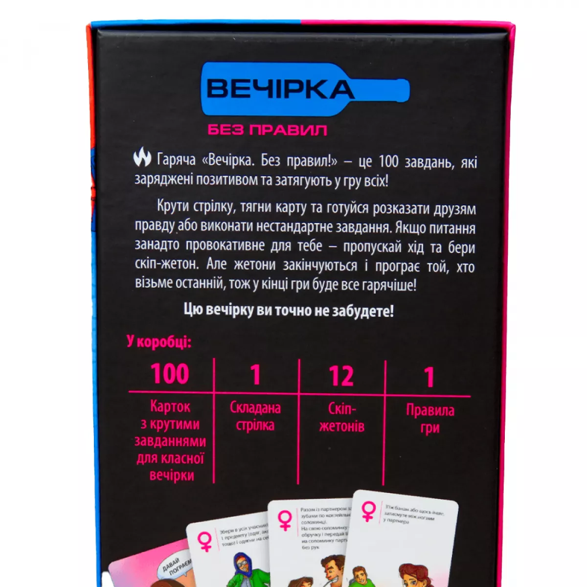 Приготуйтеся до того, що ваша вечірка стане епіцентром сміху та позитиву. Завдяки «Вечірці. Без правил» ви зможете відволіктися від повсякденних турбот, зняти стрес та насолодитися товариством друзів. Це ідеальний спосіб додати перчинки у будь-яке зібрання та створити атмосферу справжнього свята. Не пропустіть нагоду здивувати своїх гостей та подарувати їм незабутні емоції. Купуйте «Вечірку. Без правил» вже сьогодні та готуйтеся до найвеселіших посиденьок у вашому житті!