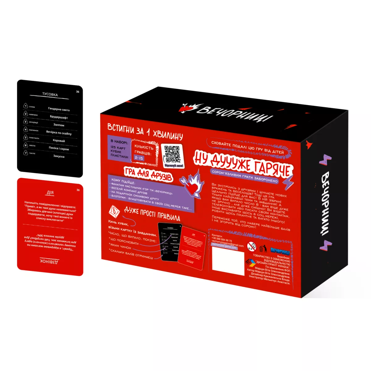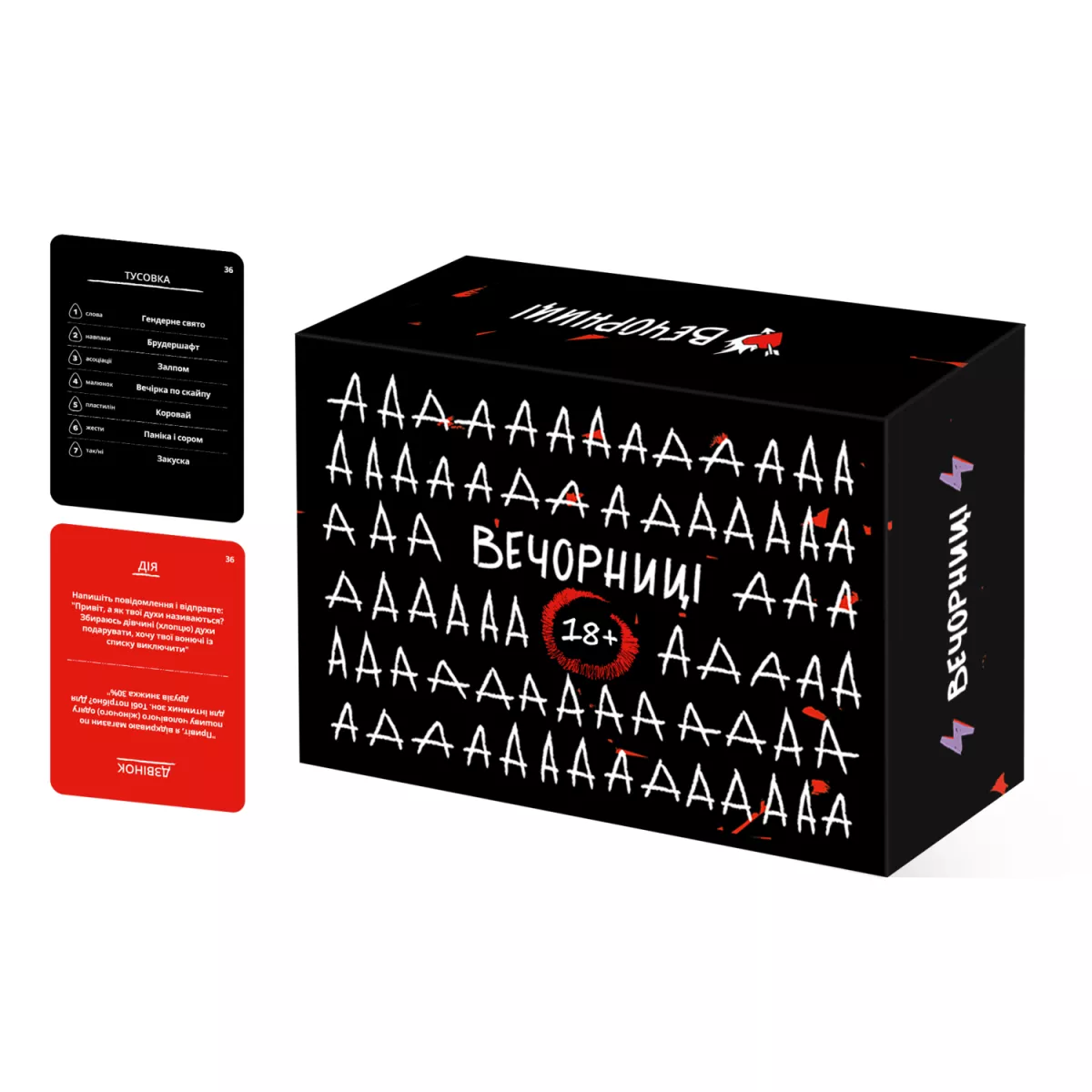 "Вечорниці 18+" — відгадування веселих та непристойних слів для компанії несором'язливих друзів без гальм. Гра полягає в тому, щоб показуючи, співаючи, моделюючи та танцюючи показувати різноманітні слова, які часто можуть бути ну дуже пристойними. Компанія Joy переконана, що ця гра стане фаворитом серед дружніх компаній, які цінують добрий гумор з перчинкою.