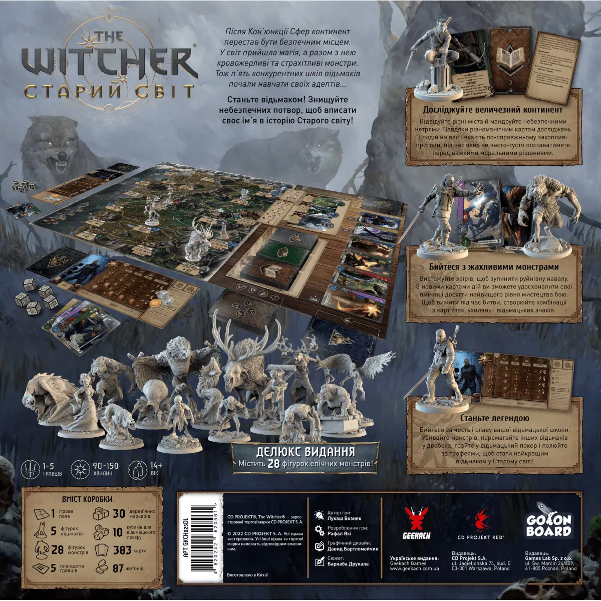 Делюксове видання гри «Відьмак. Старий світ» з прекрасними мініатюрами епічних монстрів. У комплекті 28 високодеталізованих пластикових фігурок, якими ви заміните картонні жетони монстрів із базової гри. Грифон і Виверна, Чорт і Вовкулак, Імляк і Лєший, Гнилець і Покутник, Мантикора та Архіспора, некери, упирі, уторці, а також інші легендарні чудовиська. На думку Joyа, такий набір моторошних мініатюр повинен мати кожен фанат «Відьмака».