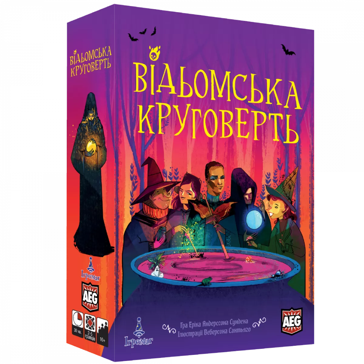 У кожного в житті рано чи пізно настає момент, коли необхідно дістати старий чан, розпалити вогонь та почати варити зілля… Хоч згідно рецепту, це був звичайний борщ, але замість буряку покладемо коріння мандрагори, замість м’яса - жаб’ячі лапки, трохи грибочків для смаку, а павук сам впав у вариво. От і все, сусіди тепер казатимуть, що ви - чаклун чи відьма! А якщо досвіду зіллєваріння у вас ще немає – хутчіш кличте друзів на шабаш у грі Відьомська круговерть, де лише за 20 хвилин в компанії до 5 чаклунів можна відчути себе справжнім магічним куховаром! Що ж робити? Кожного ходу всі відьми та чаклуни одночасно викладають додаткову сторінку до свого збірника рецептів і після цього, за цими ж рецептами починають варити зілля. Тааак, перетворюємо одну жабку та павучка (зі свого планшета) на два грибочки (які ви покладете вже до свого казанку).., і робити такі перетворення мжна відповідно до кожного рецепту, який ви зіграли раніше. А як взаємодіяти із суперниками? Оскільки у вашому казанку не компот, а мухомори - то ви передаєте його сусіду праворуч, аби він розбирався із тим варивом. Але, разом з тим, сусід ліворуч віддає вам свій казанок, і все, що плаває там, тепер необхідно викласти на свій планшет. Та як же ж перемогти цих надокучливих відьом?! Справа в тому, що на планшетах для інгредієнтів місце рано чи пізно закінчується. І якщо сусід праворуч має взяти собі ще жабку, а воно йому не лізе - ця жабка стане вашим переможним очком. Хто перший отримає 5 переможних очок - той відьма над усіма відьмами! У тої - кіт найчорніший, мітла найшвидша,  а зачіска - ну взагалі відпад! А як додати, що рецептів у грі тьма-тьмуща, різних відьом із унікальними особливостями - вагон, та ще й малюночки на картках казкові, то питання, чи треба придбати Відьомську круговерть у свою колекцію, вже вирішено: звичайно, ТАК! Якщо ж варіння зіллячок у вас в крові і, разом з тим, є бажання перевірити свою удачу, ласкаво просимо на гамірний ярмарок у грі Пройдисвіти Кведлінбурга!