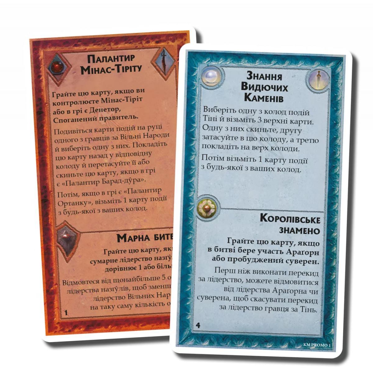 Ексклюзивні промокарти «Палантир Мінас-Тіріту / Марна битва» та «Знання Видючих Каменів / Королівське знамено» для доповнення «Війна Персня. Королі Середзем’я».