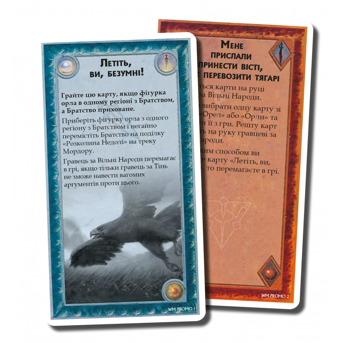 Ексклюзивні промокарти «Летіть, ви, безумні!» та «Мене прислали принести вісті, а не перевозити тягарі» для доповнення «Війна Персня. Воїни Середзем’я»