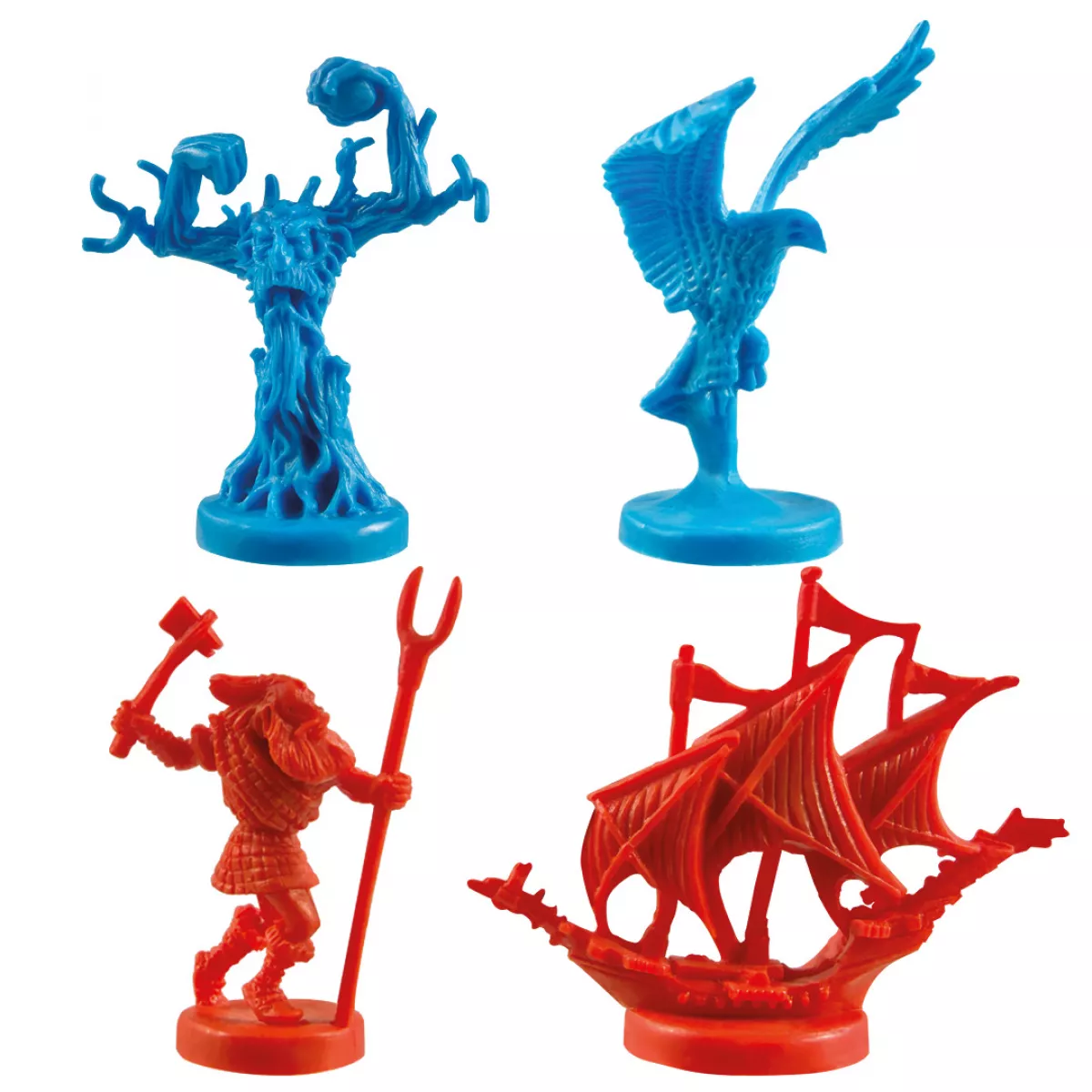 Є вісім фігурок для кожної фракції, кубик фракції для кожного гравця, картки подій фракцій, картки заклику до бою, картки подій і новий персонаж: Деревобород! На жаль, незважаючи на те, що ви отримуєте карту персонажа Деревоборода, фігури Деревоборода немає, що дуже прикро. Усі мініатюри досить гарні та, здається, зроблені з міцнішого та твердішого пластику, ніж у оригінальній грі War of the Ring. Вони також дещо відрізняються синьо-червоним від тих, що в оригіналі. Це допомагає їх розрізняти, що добре, коли ваша величезна дошка заповнена сотнями крихітних людей.