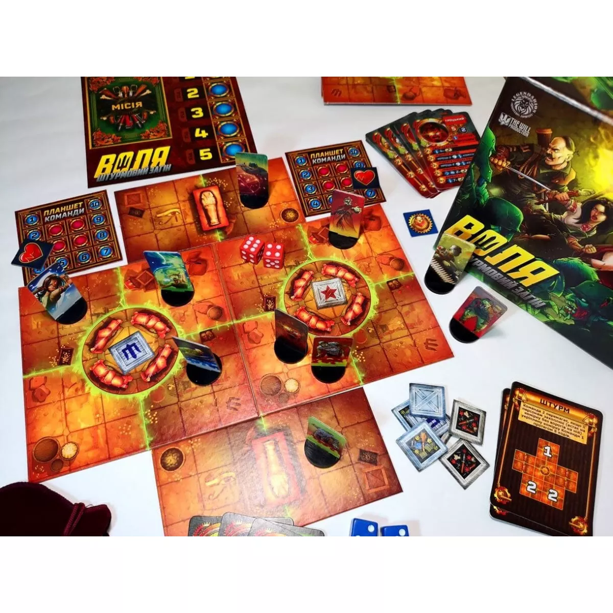 Воля. Штурмовий загін - це швидка, захоплююча та проста для сприйняття настільна гра у жанрі тактична стратегія.  Грайте за штурмовий загін героїв з легендарного Українського коміксу "ВОЛЯ" у 7 режимах! Грамотно комбінуйте властивості героїв і створюйте власні тактики перемоги! Час на вивчення правил - усього 10 хвилин, особливо сподобається поціновувачам одноіменного коміксу «ВОЛЯ».