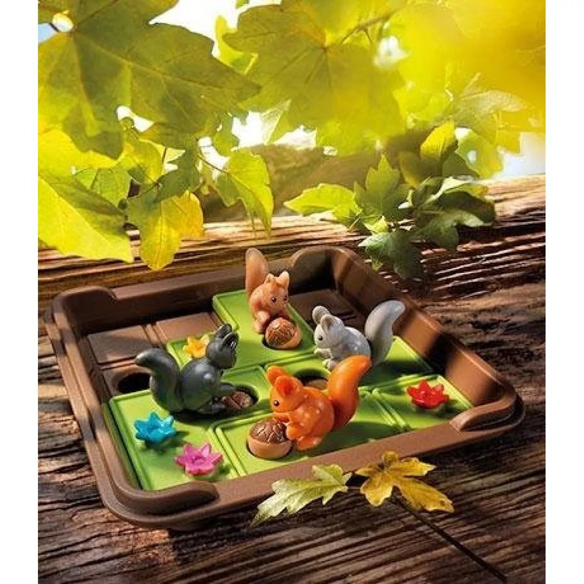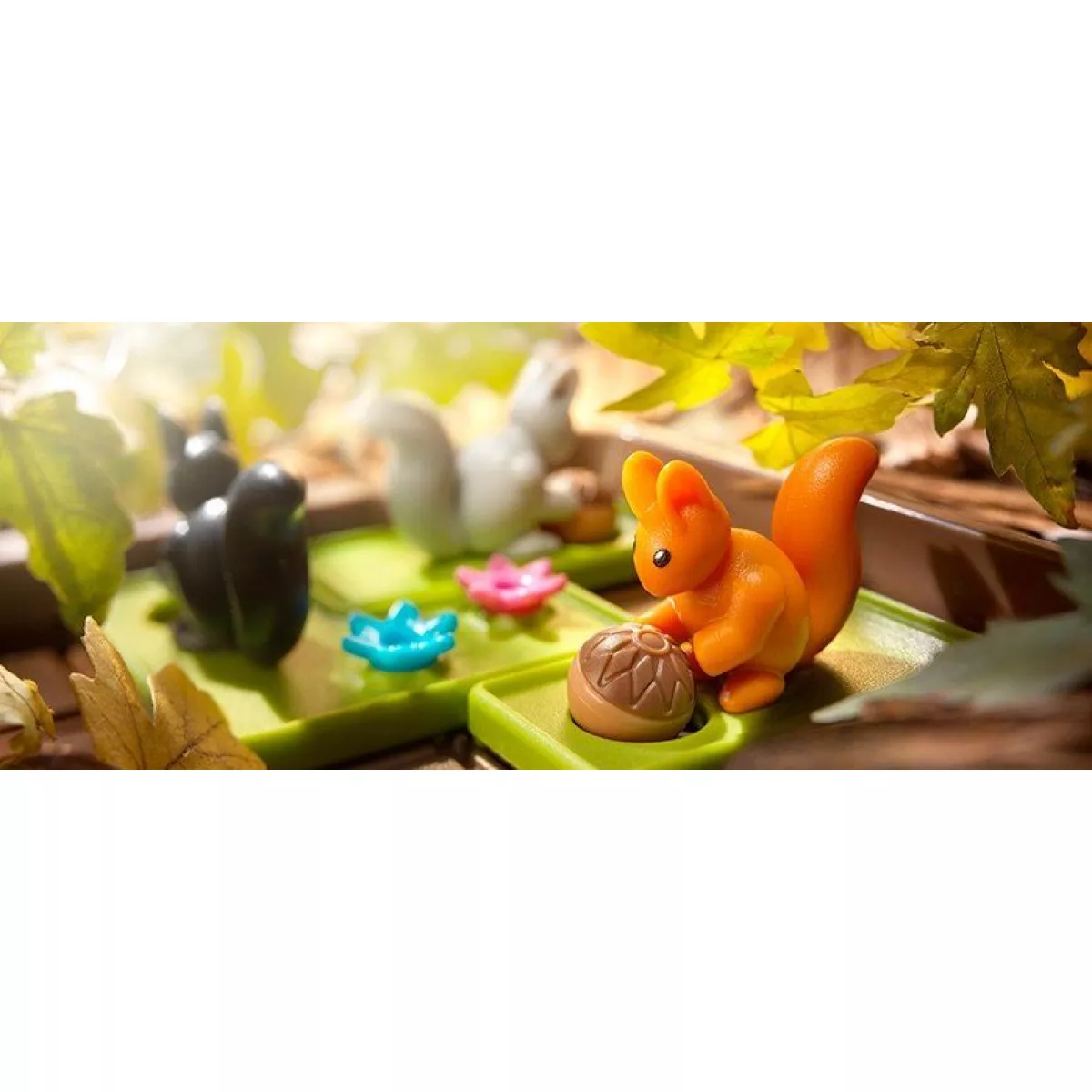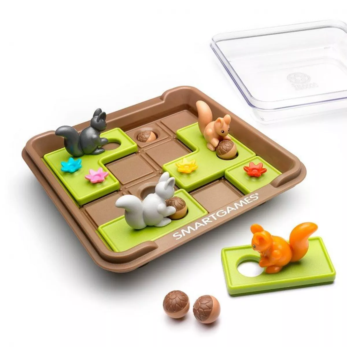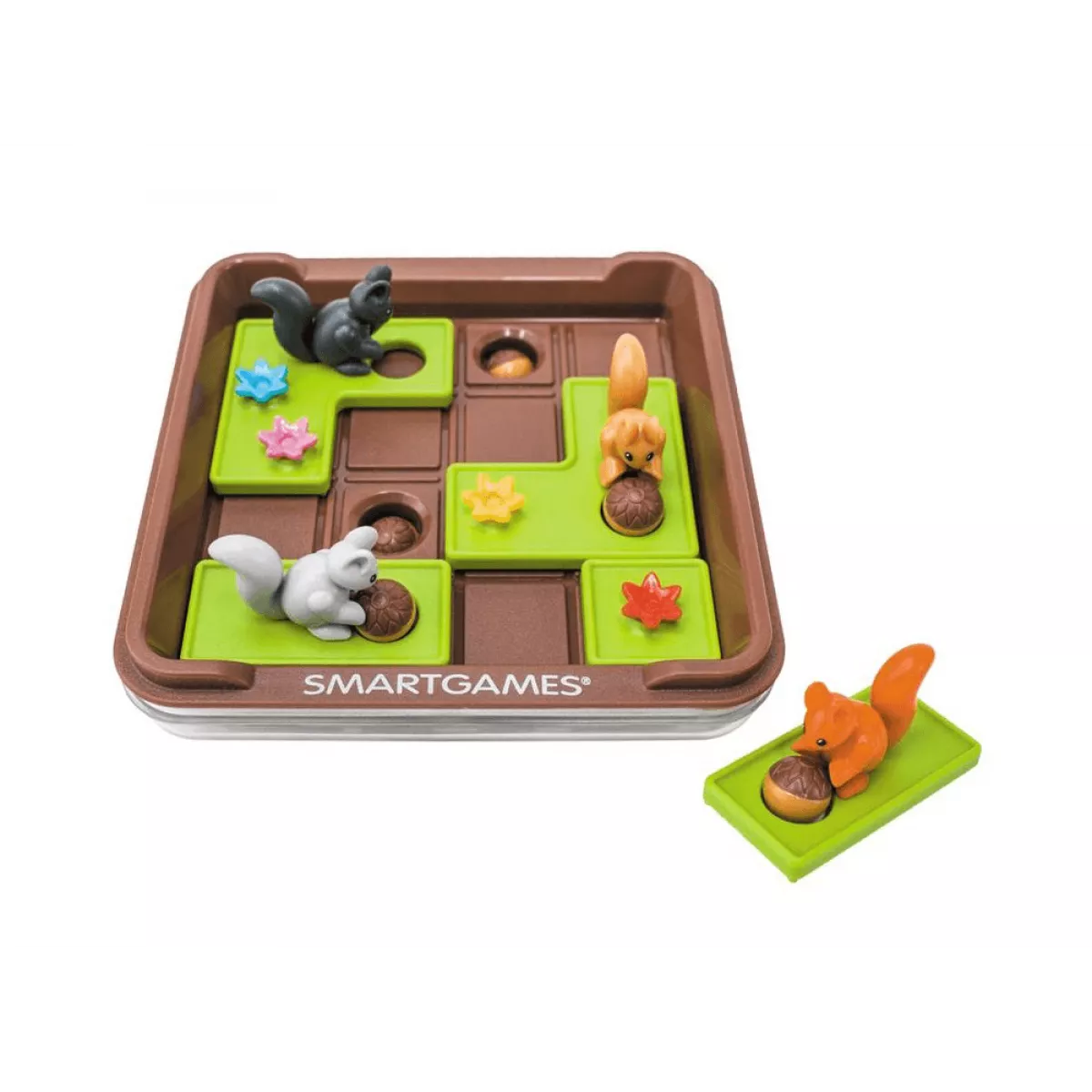 Не знаємо як ви, а ми доволі частенько спостерігаємо за маленькими звірятками. Особливо любимо білочок – вони так мило збирають собі запаси на зиму, а потім тягнуть до своїх сховків. І то ще важливо не переплутати, де чий склад, щоби потім не було складнощів. Допоможіть їм у всьому розібратися у чудовій головоломці від компанії Smart Games під назвою Уперед, за горіхами! Тільки слідкуйте, щоби кожен горішок знайшов правильне дупло. Хто тут розкидається запасами на зиму? Уперед, за горіхами! – це невеличка головоломка для будь-якого можливого віку. Завдання різного рівня складності, яких тут усього 60, підійдуть як для дітей, так і для дорослих. Просто обирайте те, що найбільше сподобалось, і переходьте до його виконання. І постарайтесь продумувати свої кроки, адже тоді й відповідь буде знайти простіше. Починається все з того, що ви розміщуєте деталі на ігровому полі так, як це вказано в буклеті. Далі ж необхідно їх переміщати, аби горішки у правильній послідовності потрапили у правильні отвори. Звучить усе доволі просто, але протягом розгадування головоломок неодноразово захочеться почати все заново. Якщо що, правильні відповіді завжди можна знайти наприкінці буклету.