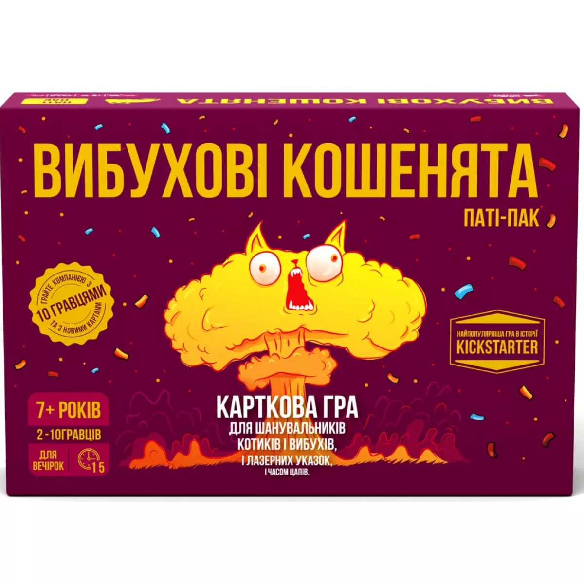 Готуйтеся до справжнього котячого хаосу! Вибухові кошенята: Паті-пак (Exploding Kittens: Party Pack) — це розширена версія одного з найпопулярніших карткових хітів у світі, створена спеціально для тих, хто любить великі компанії та динамічний геймплей. Якщо стандартних версій гри вам ставало замало через обмеження по кількості гравців, то Паті-пак вирішує цю проблему раз і назавжди, дозволяючи зібрати за одним столом максимальну кількість друзів для незабутнього вечора.