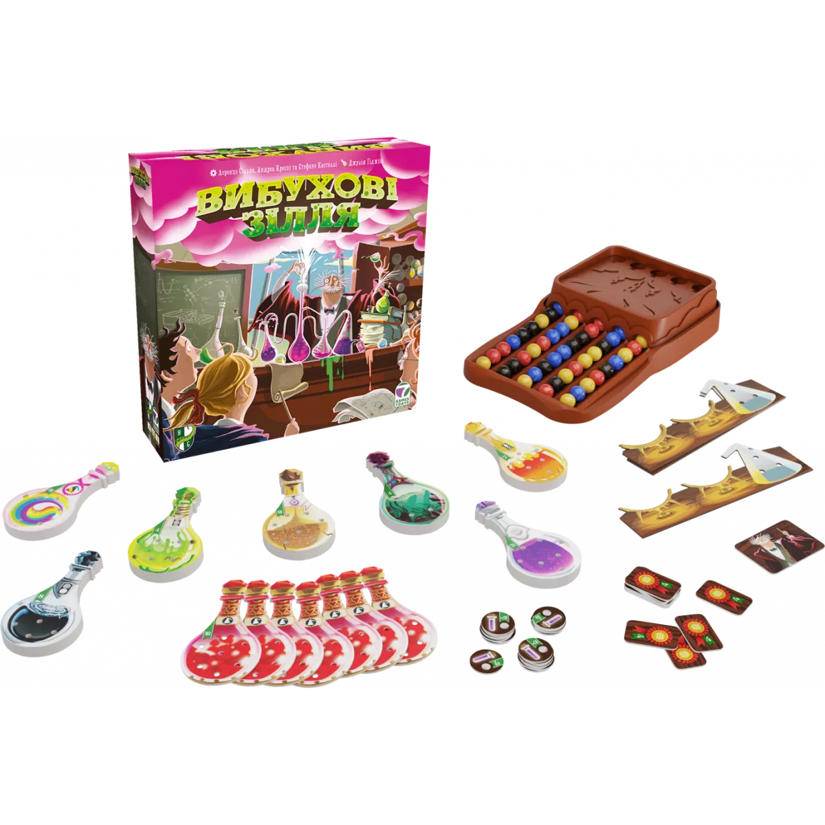 «Вибухові зілля» - це логічна стратегічна гра, в першу чергу орієнтована на сімейний сегмент. В процесі гри учасники будуть роздумувати над тим, яким чином отримати більше кульок і коли саме розпорядитися звареними зіллями, застосувавши їх ефекти. Гра забезпечує хорошу взаємодію між гравцями, розвиває навички планування та прийняття оптимальних рішень.