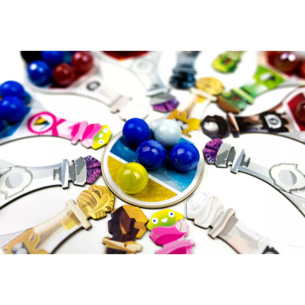 Гравці по черзі беруть по одній кульці інгредієнтів з дозатора. Фокус в тому, щоб після цієї процедури зіштовхнути кульки одного кольору - тоді починається ланцюгова реакція: всі інгредієнти даного типу «вибухають», і гравець забирає собі ці кульки. Якщо після «вибуху» відбувається ще одне зіткнення однакових кульок, гравець продовжує отримувати нові кульки. У будь-який момент ходу можна попросити допомогу від професора - взяти кульку будь-якого кольору з дозатора. За кожну таку доведеться втрачати по 2 очка в кінці гри.
