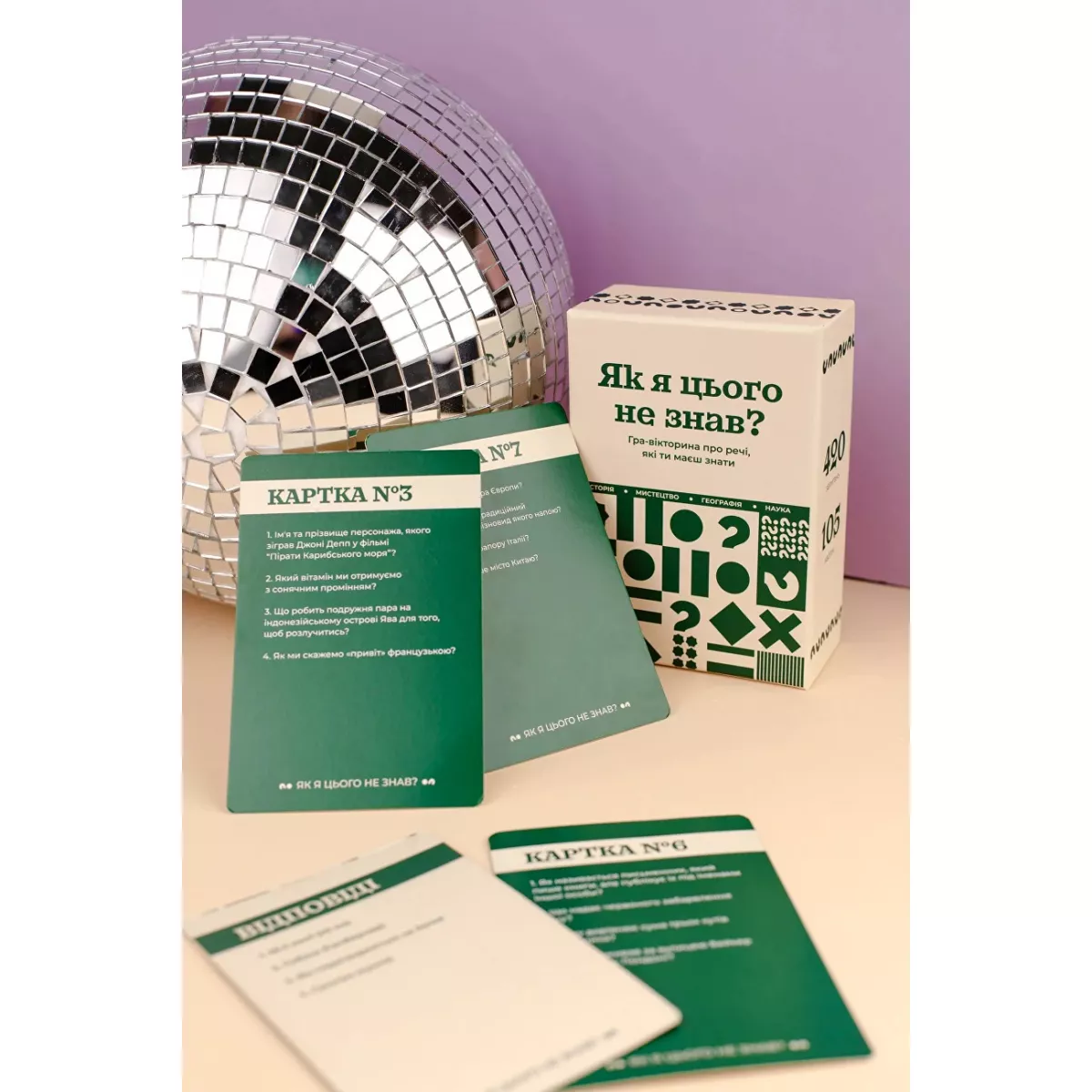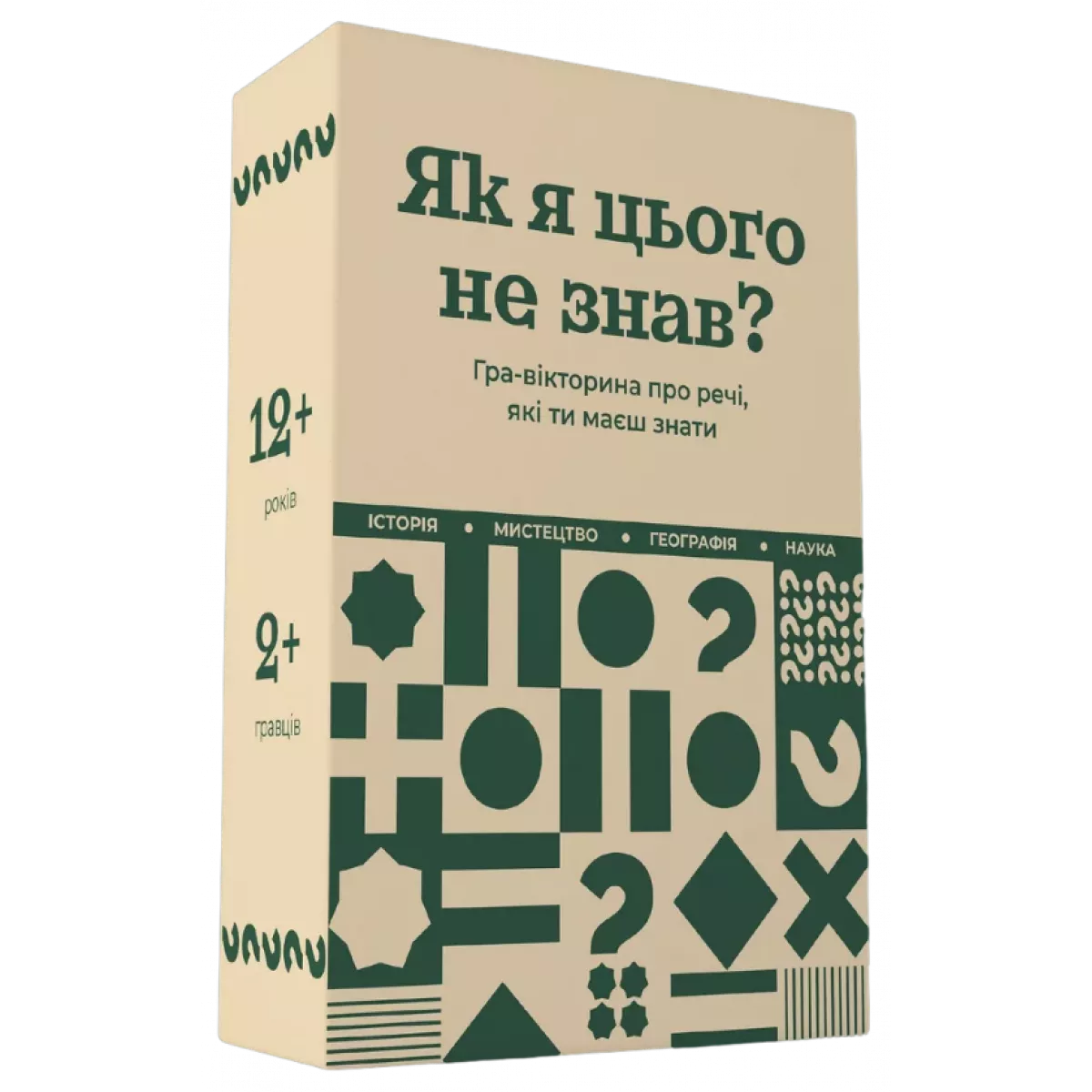 Сьогодні вся інформація світу знаходиться у вашому смартфоні, достатньо натиснути кілька кнопок і інтернет надасть відповіді на всі питання! А чи багато ви пам’ятаєте самостійно? Чи відклалася у дальніх закутках пам’яті інформація, яку ви останній раз вчили у інституті, чи навіть школі? Саме це і дасть змогу перевірити гра Як я цього не знав? Classic Edition у  формі вікторини, яка складається із цілих 440 запитань! Перевіряйте себе, змагайтеся з друзями, а також долучайте дітей до гри. Хто зможе надати більше правильних відповідей на питання з природознавства, математики та історії: поважний дорослий з роками досвіду за плечима, чи школяр, який це проходив буквально кілька уроків тому? Гру також можна використовувати під час навчального процесу або з пізнавальною метою, як розповідаючи діткам цікаві факти про кожне запитання, досліджуючи і відшуковуючи додаткову інформацію і факти, так і відкривати для себе щось нове, або дуже гарно забуте. Тому не баріться, збирайте компанію знавців, що готові перевірити себе та замовляйте гру, аби після партії можна було впевнено сказати «А тепер - я це вже знаю!» Також зверніть увагу на гру Як я цього не знав? Ukraine edition, у якій зібрані питання з історії, географії та літератури рідної неньки України!