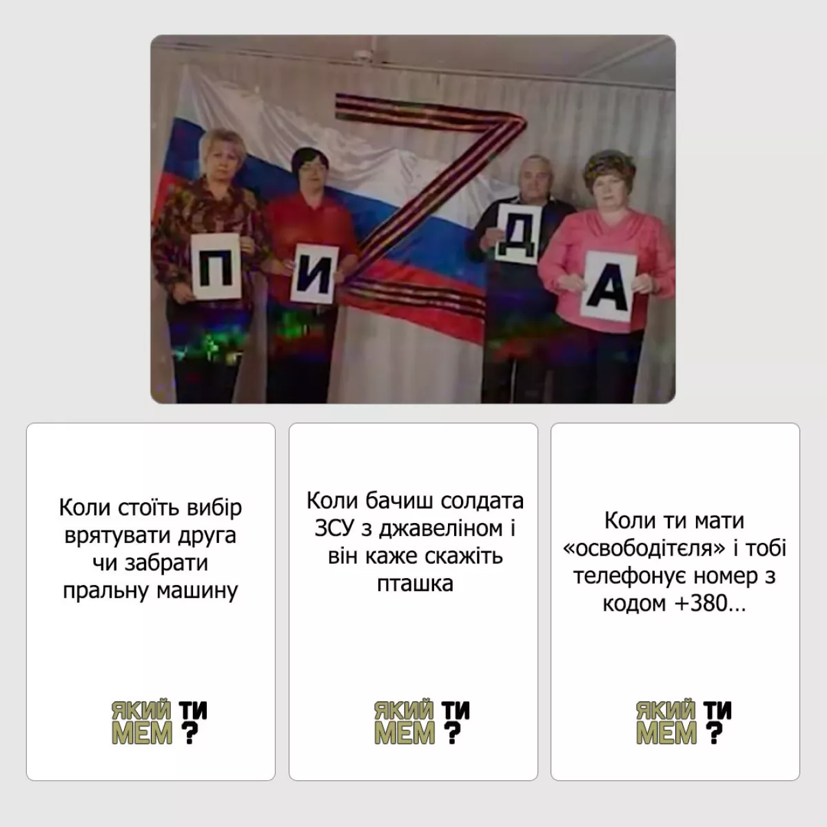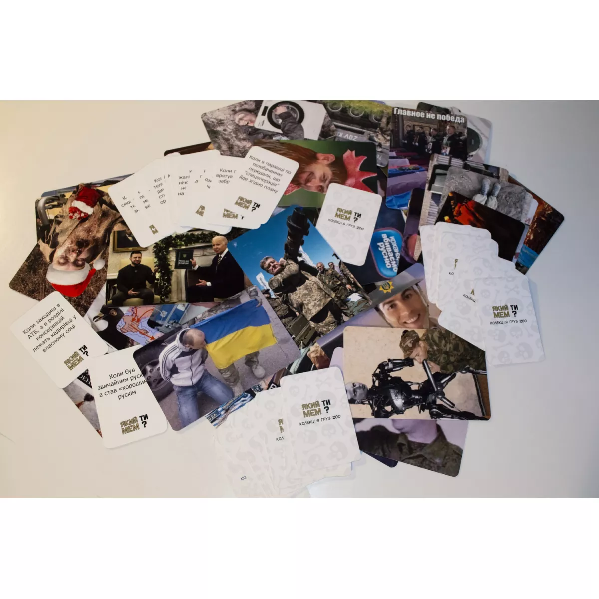 "Який ти МЕМ? Груз 200 колекція" — це настільна гра, яка об’єднує шанувальників інтернет-гумору. Гравці повинні влучно поєднувати зображення мемів із підписами, щоб створити найсмішнішу комбінацію. Перемогу здобуде той, чий мем виявиться найбільш влучним і кумедним.