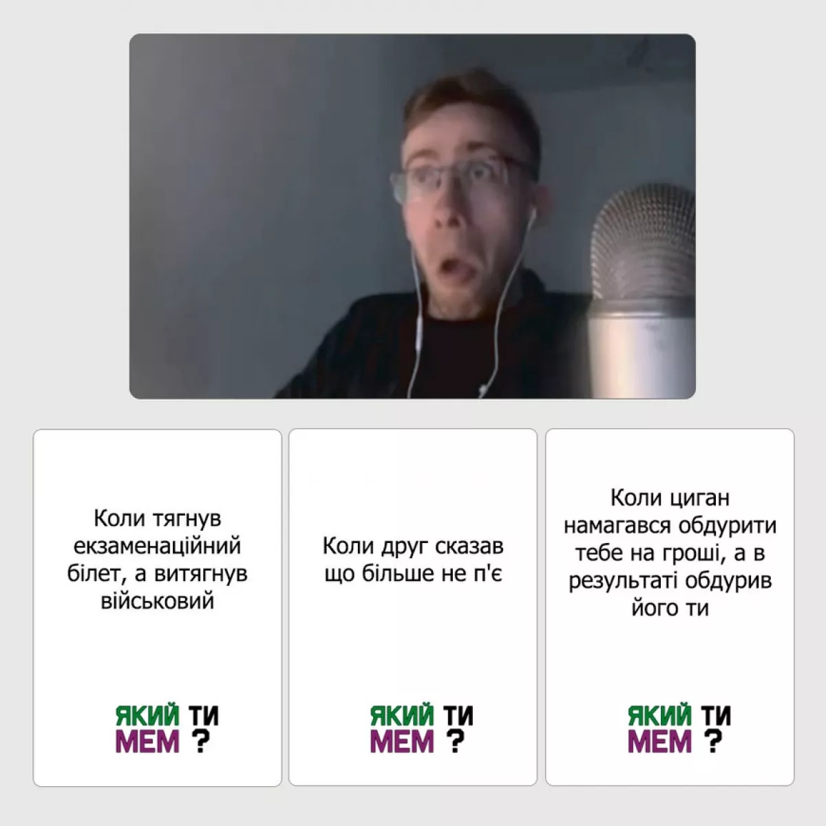 4. Автор найсмішнішого на думку ведучого мему до поточної ситуації отримує собі на знак перемоги в раунді карту ситуації.
