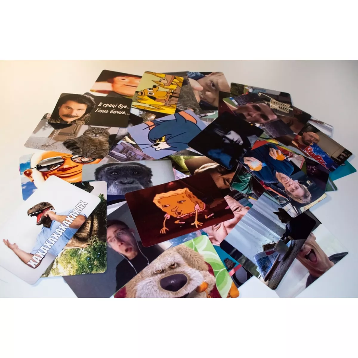3. Коли всі вже виклали карти, ведучий перетасовує стос з обраними мемами та розкриває по одній карті на столі.