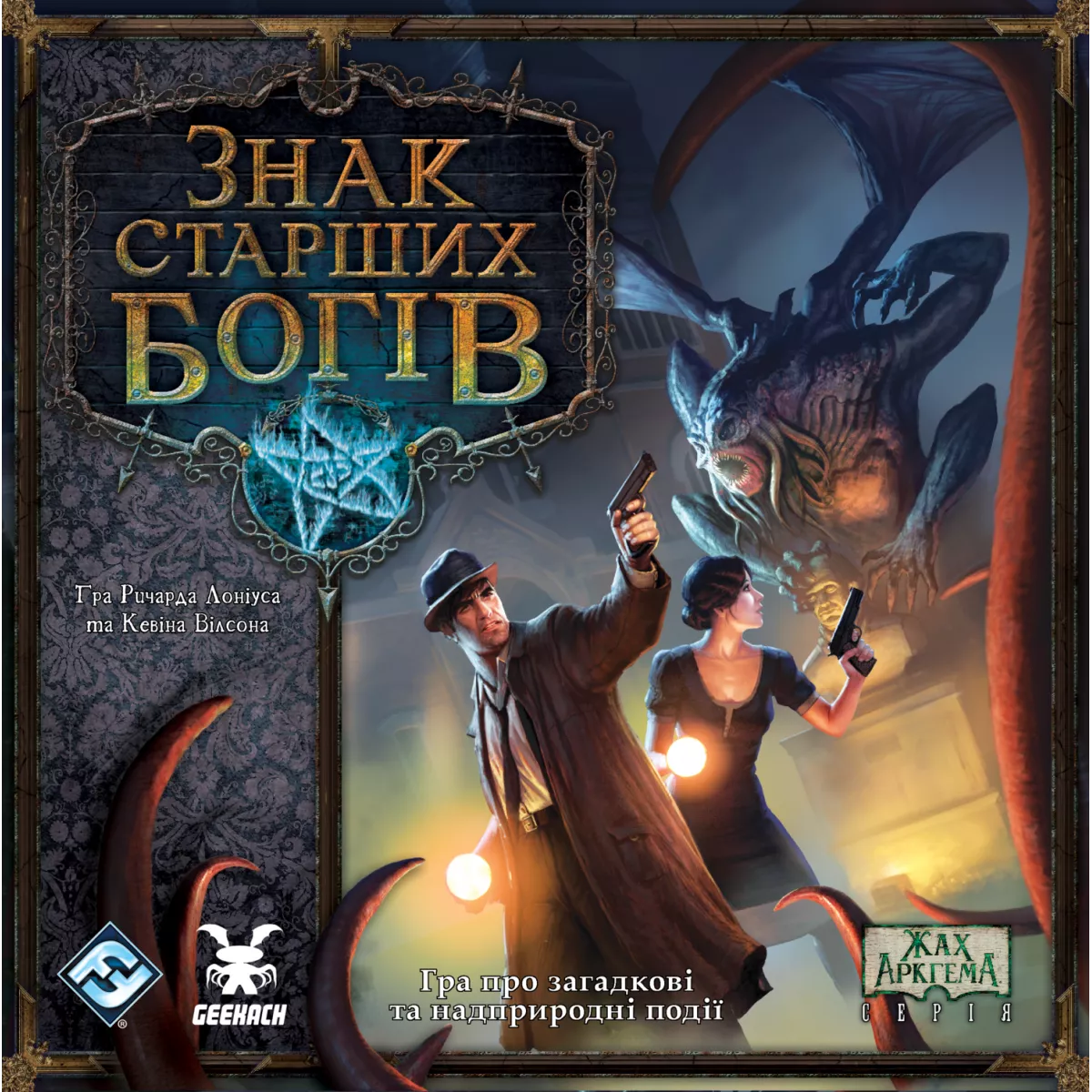 «Знак Старших богів» – це кооперативна гра про загадкові та надприродні події за мотивами творів Г. Ф. Лавкрафта від розробників гри «Жах Аркгема» Ричарда Лоніуса та Кевіна Вілсона. Уперше гра побачила світ у 2011 році, а вже в 2012 її номінували на найкращу тематичну настільну гру на Golden Geek Awards. Якщо ви є прихильником творчості Лавкрафта, Гікач також радить звернути увагу на пригодницьку кооперативну гру «Прадавній жах» та базовий набір для настільної рольової гри «Поклик Ктулху».