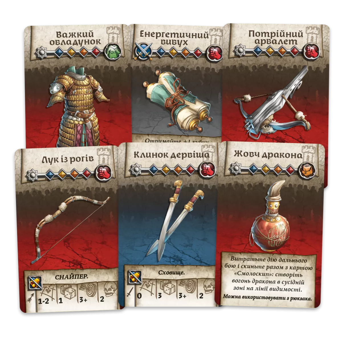 Упорядкування інвентаря / обмін спорядженням. Упорядкуйте карти у своєму інвентарі, як вважаєте за потрібне. Обміняйтеся спорядженням з іншим героєм у своїй зоні.