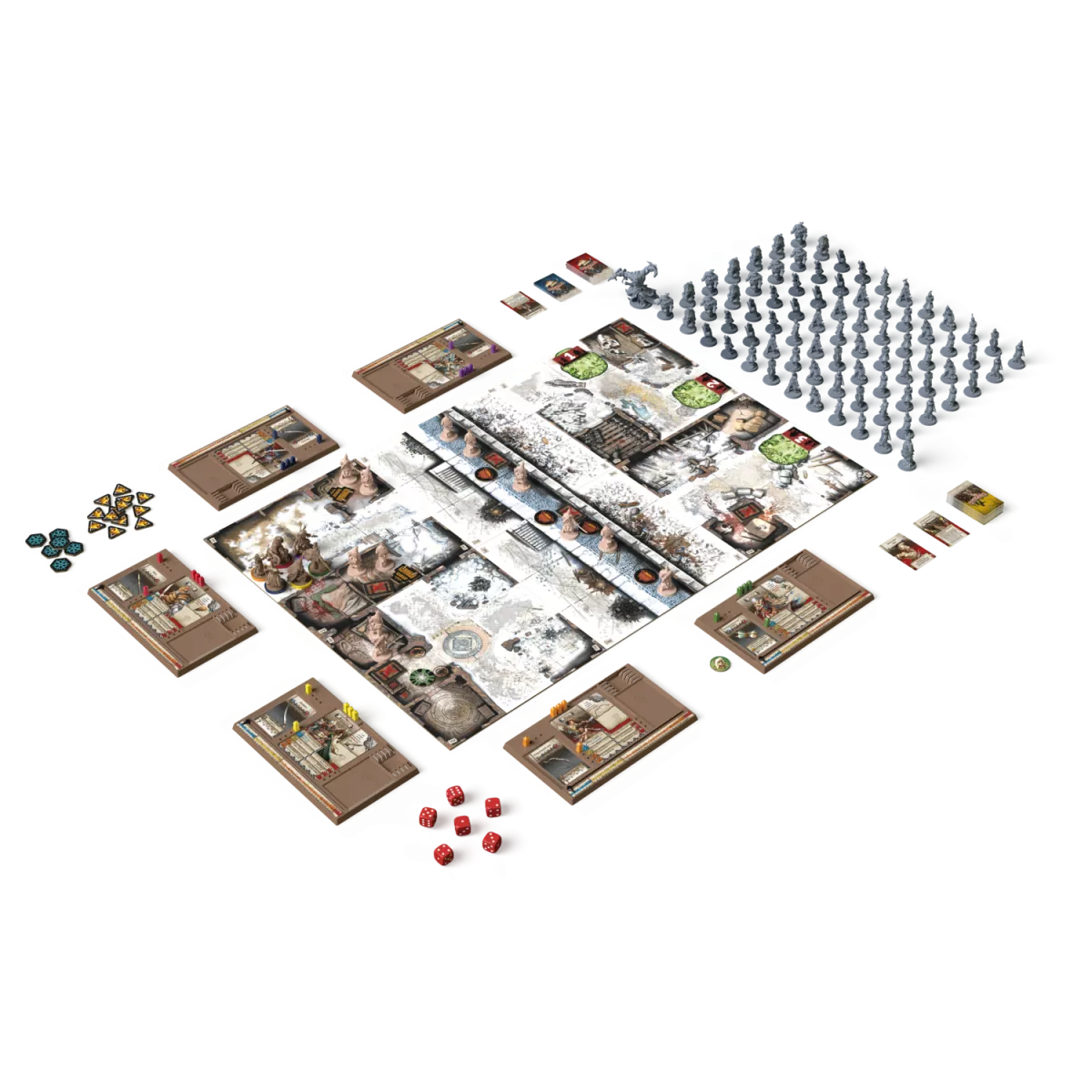 У коробці 6 фігурок і карт героїв, 65 фігурок зомбі, 9 двосторонніх плиток мапи, 12 фігурок вартових, 6 кольорових підставок для героїв, 6 кубиків, 6 планшетів героїв, 48 маркерів, 64 жетони, 161 мінікарта, правила