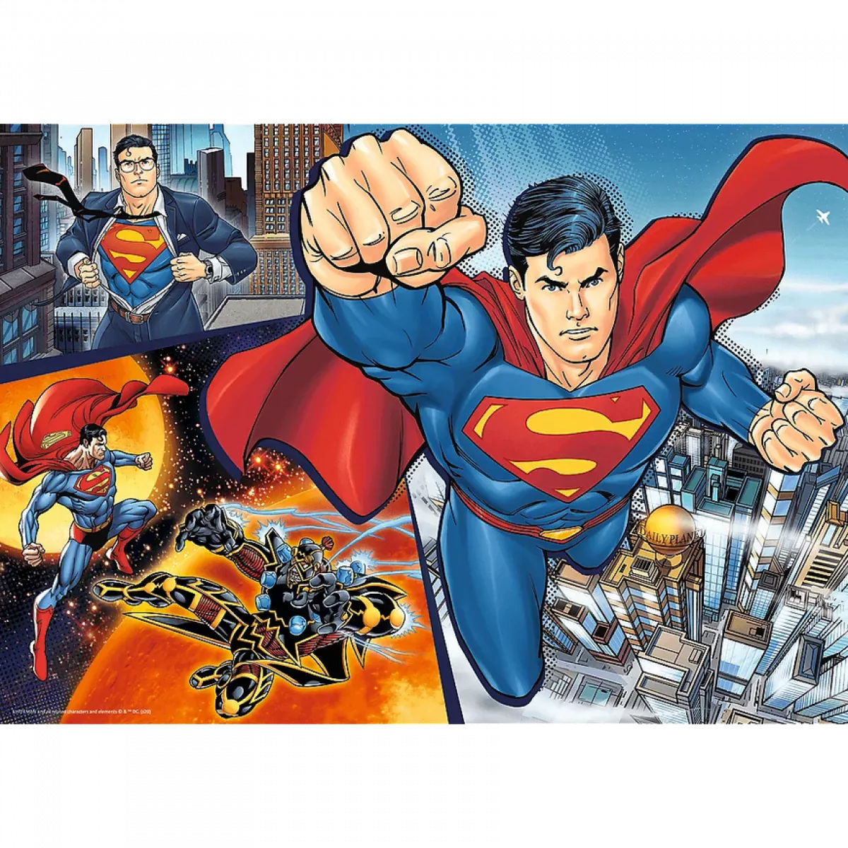 Супермен – ікона поп-культури, символ надії, правди та справедливості. Його історія, що розповідає про Кларка Кента, прибульця з Криптона, який використовує свої надзвичайні здібності для захисту людства, надихає мільйони фанатів по всьому світу. Збираючи кожен фрагмент цього пазла, ви немов долучаєтеся до його героїчної місії, відчуваючи силу та велич цього персонажа. Цей дитячий пазл дозволить не лише побачити улюбленого героя, але й зануритися у його світ, відтворивши яскравий момент його звершень.