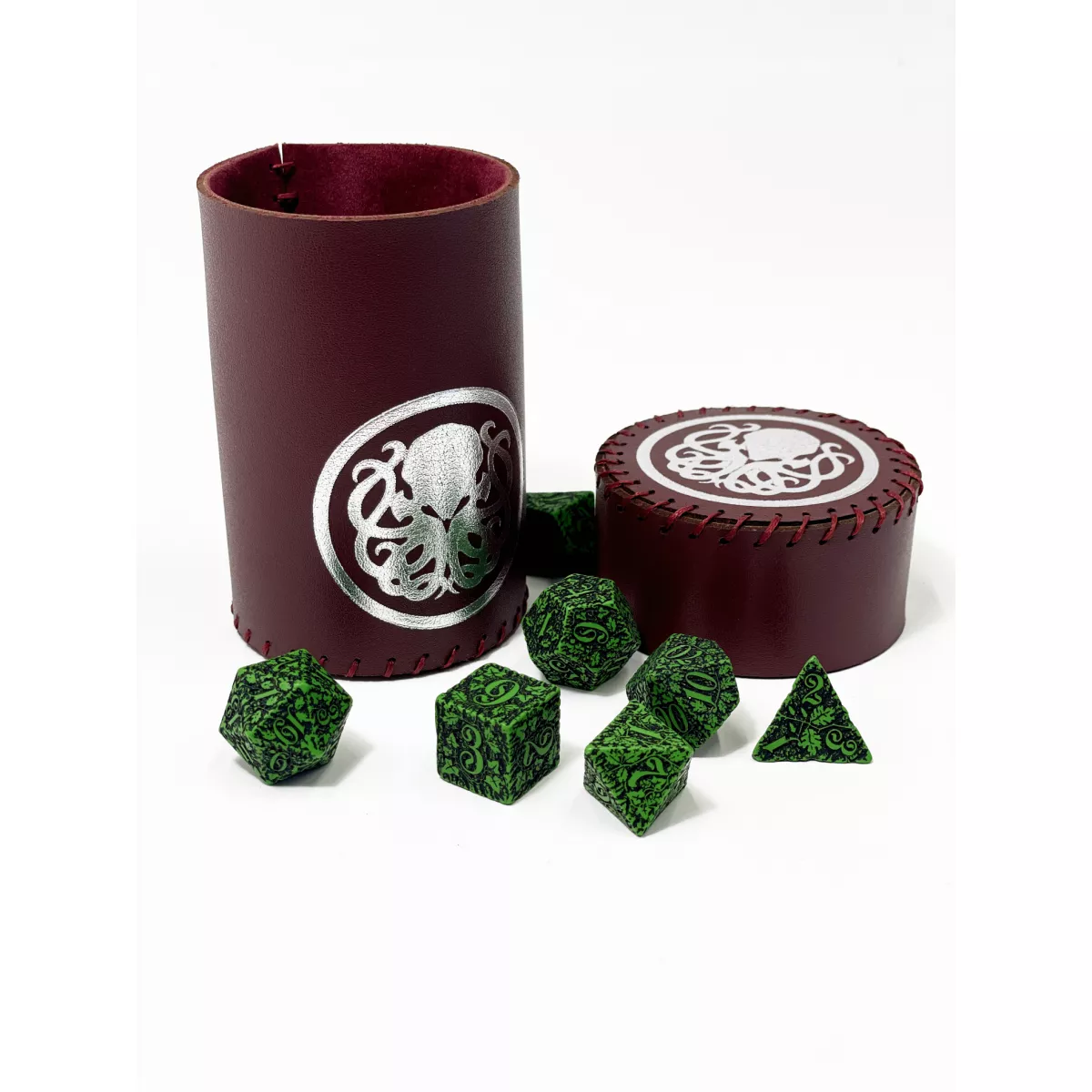 Виготовлений з високоякісної екошкіри, цей стакан для кубиків Ктулху бургунді Dice Cup є прикладом довговічності та елегантності. Екошкіра – це сучасний, екологічно чистий матеріал, що чудово імітує натуральну шкіру, зберігаючи при цьому всі її переваги: міцність, приємну на дотик текстуру та стійкість до зносу. Ви можете бути впевнені, що ваш стакан прослужить вам довгі роки, витримуючи численні подорожі та ігрові сесії. Ретельна обробка та якісне пошиття гарантують, що виріб збереже свій первісний вигляд, не втрачаючи привабливості навіть після інтенсивного використання. Це не просто стакан, це інвестиція у ваш ігровий комфорт та стиль.