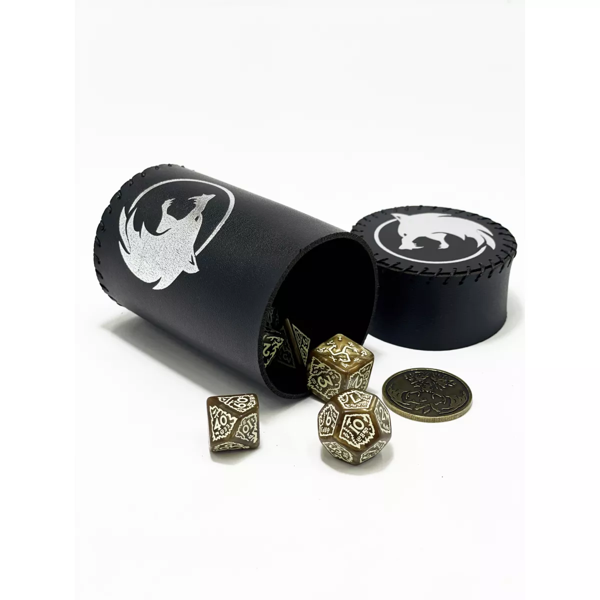 Ласкаво просимо у світ настільних ігор, де кожна деталь має значення! Представляємо вашій увазі Стакан для кубиків Вовк чорний Dice Cup – не просто аксесуар, а справжнє втілення стилю, функціональності та надійності для кожного поціновувача настільних рольових ігор, колекціонера дайсів та ентузіаста пригод. Цей якісний тематичний стакан, виготовлений з екошкіри, стане вашим незамінним супутником у кожній партії, надійно захищаючи та елегантно зберігаючи ваші улюблені кубики.