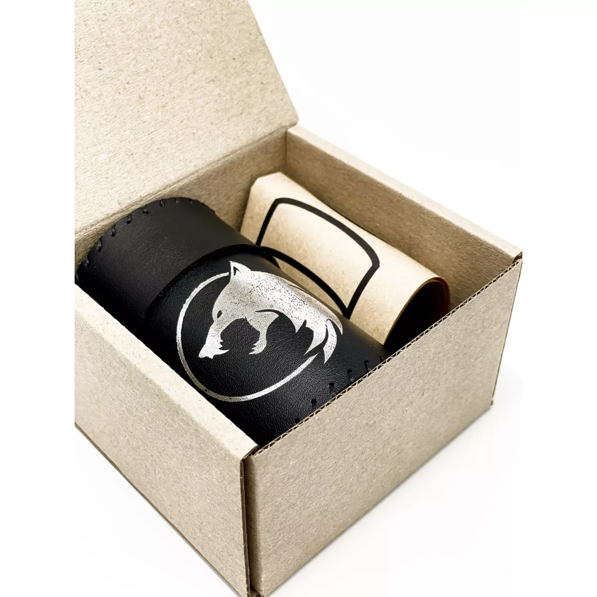 Догляд за аксесуаром з екошкіри надзвичайно простий. Щоб підтримувати його ідеальний стан, достатньо регулярно протирати поверхню м'якою вологою тканиною, уникаючи використання агресивних хімічних засобів. Це допоможе зберегти блиск та еластичність матеріалу на довгі роки, забезпечуючи, що ваш стакан для кубиків Вовк чорний завжди виглядатиме як новий.