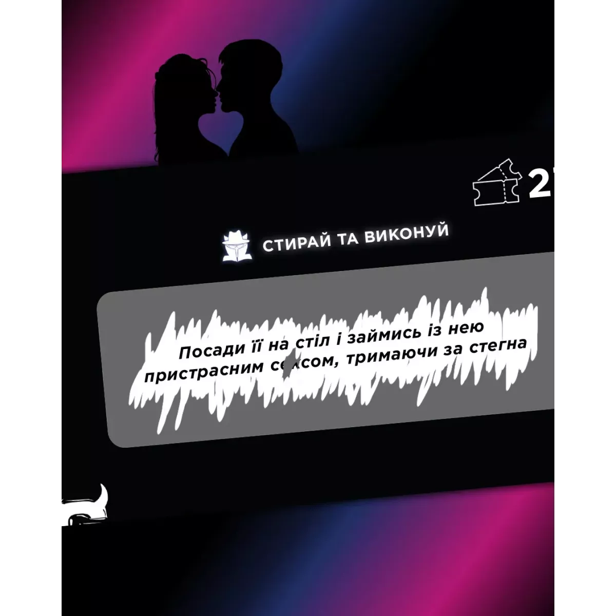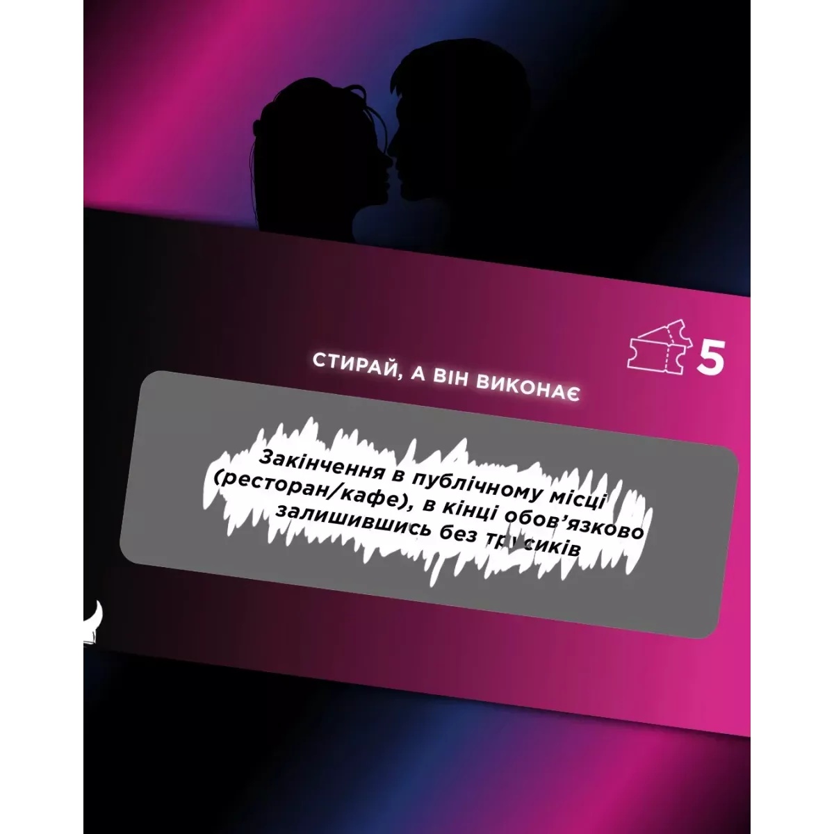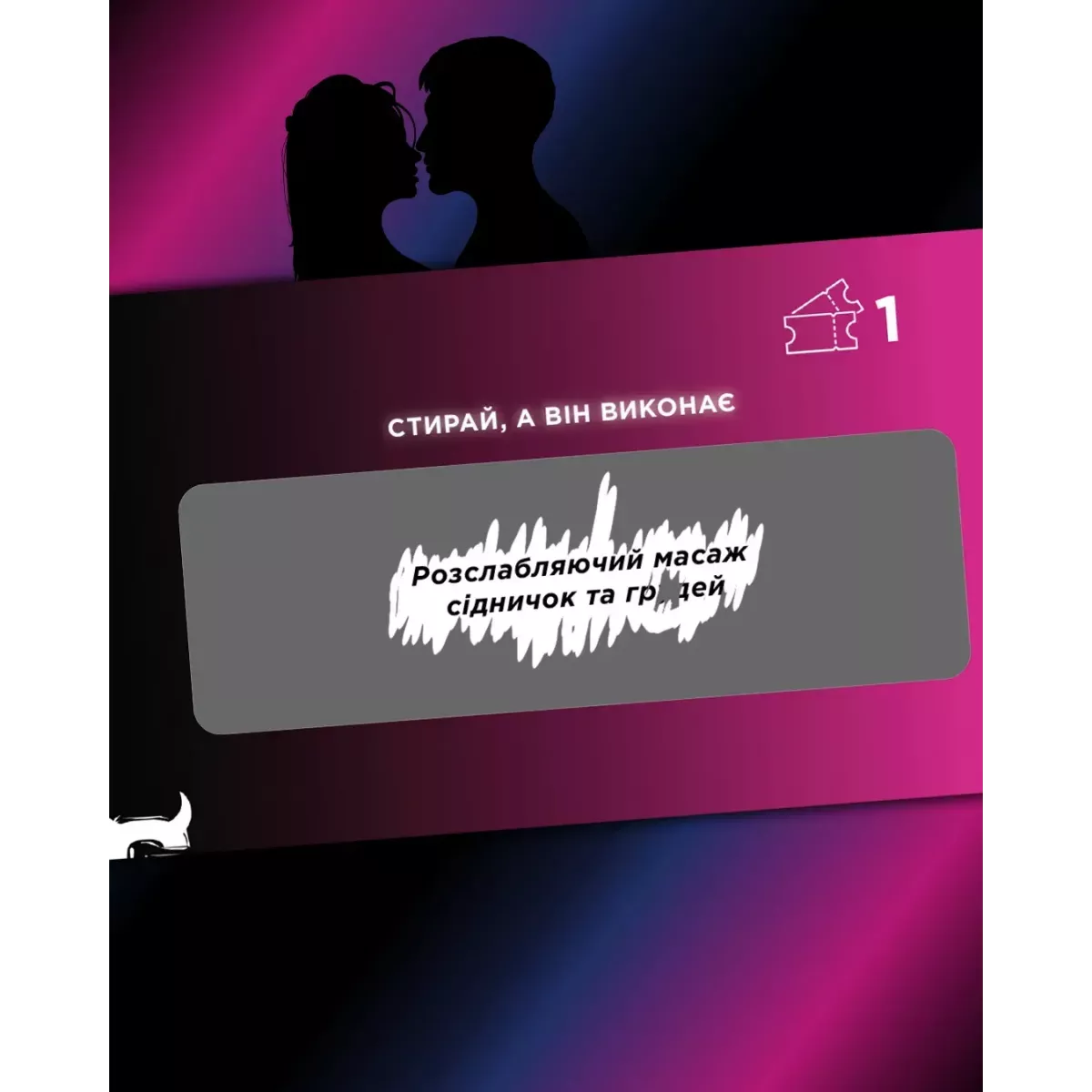 30 секретних завдань під скретч-покриттям — усе, що потрібно, щоб внести трохи азарту, несподіванки та пристрасті у ваші стосунки. Просто оберіть білет, зітріть захисний шар монеткою і виконайте завдання… У вас є 24 години!