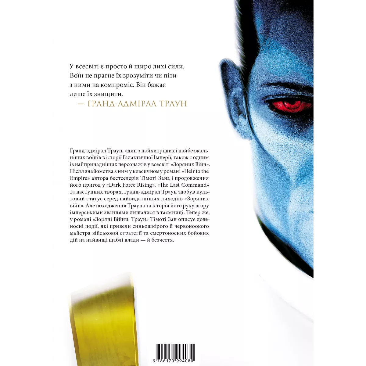 Неможливо говорити про Трауна без згадки про його творця, Тімоті Зана. Саме Зан у 90-х роках подарував світу цього персонажа, який відродив інтерес до "Зоряних Війн" задовго до виходу нових фільмів. Його вміння створювати складні, багатогранні сюжети та глибоких персонажів робить "Траун. Книгу 1" справжнім шедевром наукової фантастики. Зан майстерно поєднує політичні інтриги, військову стратегію та філософські роздуми про природу влади та моралі. Його стиль написання є настільки захопливим, що ви не зможете відірватися від сторінок, допоки не дізнаєтеся, чим закінчиться чергове протистояння розумів.