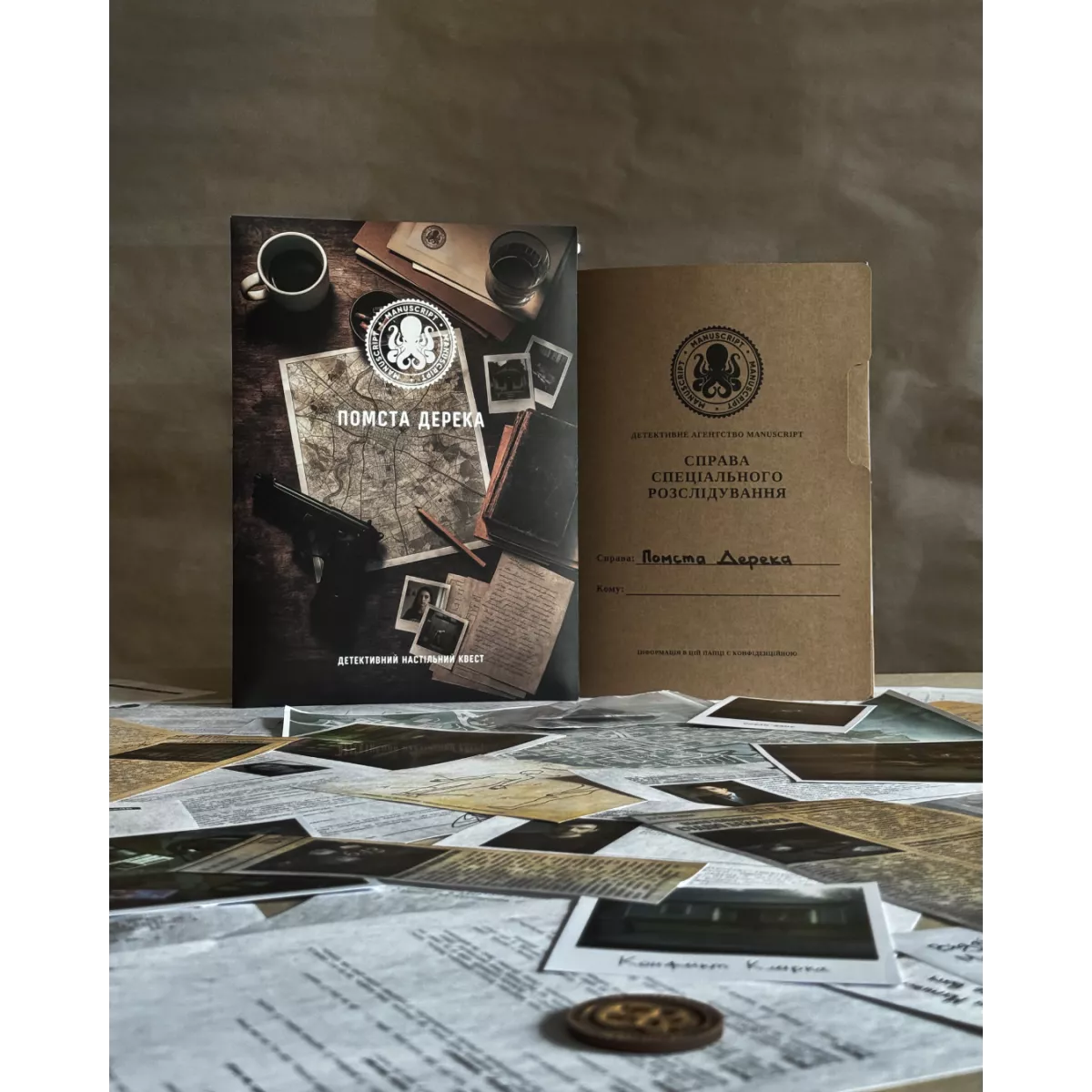 «Помста Дерека» — четверта гра із серії детективних розслідувань, що містять усі необхідні матеріали для створення власної слідчої дошки, якій бракує хіба що класичної червоної нитки. Аудіозаписи, інтерактивні речові докази, свідчення, протоколи, реєстри, мапа міста — понад 50 елементів у папці справи. Дослідіть документи, поєднуйте докази й знаходьте відповіді на питання.